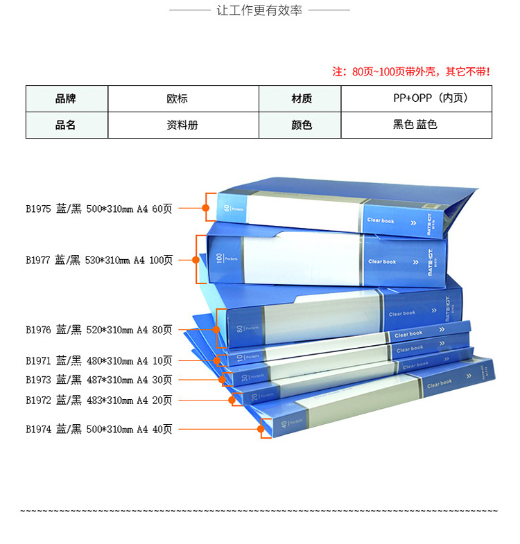 商品名称:欧标(MATE-1ST)B1975 资料册60页 插页文件夹A4 人事档案夹 500*310mm 蓝色(单位:个)