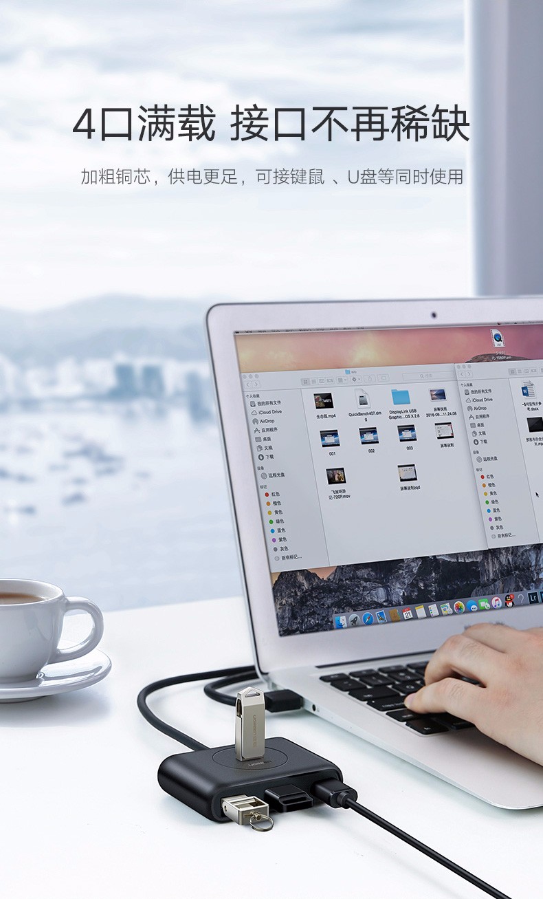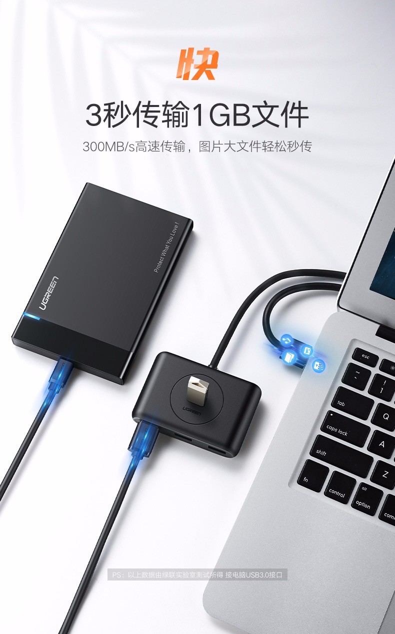 绿联 USB3.0分线器 集线器 一拖四多接口扩展坞转换器 HUB集线器 1米