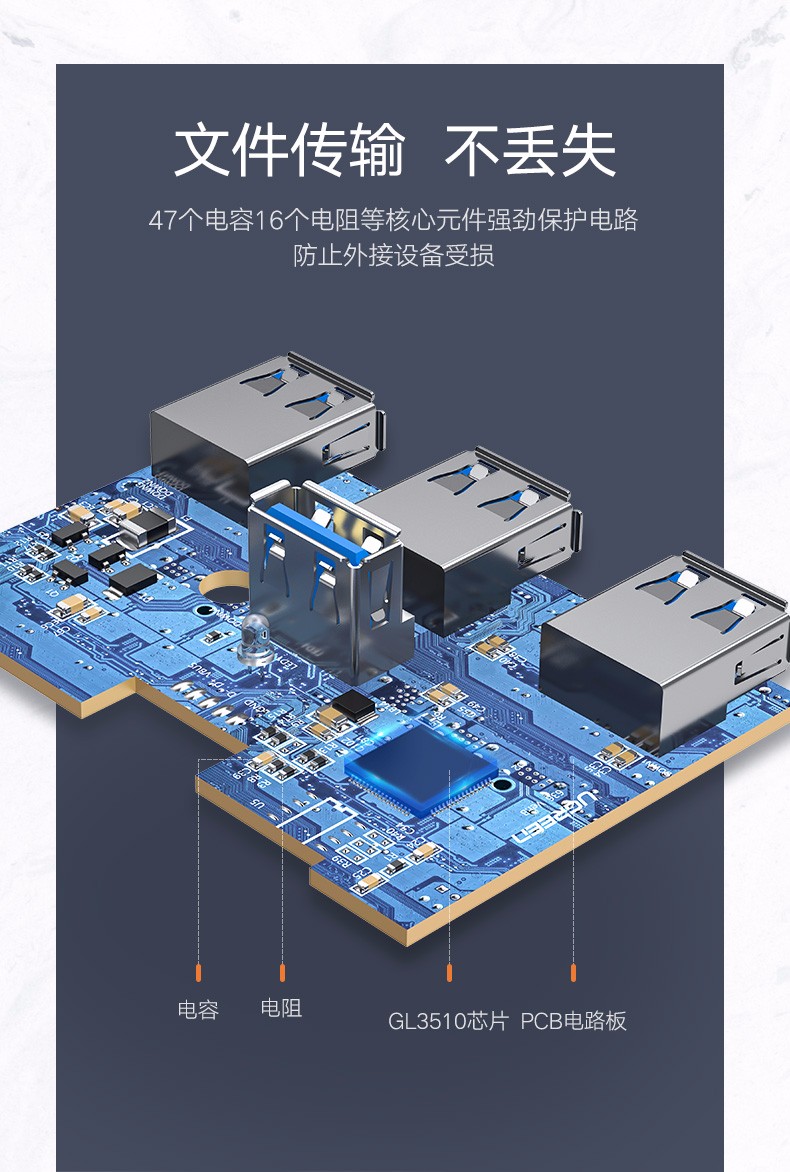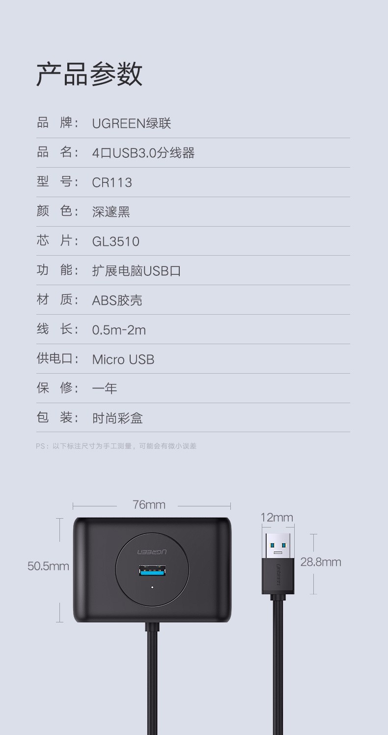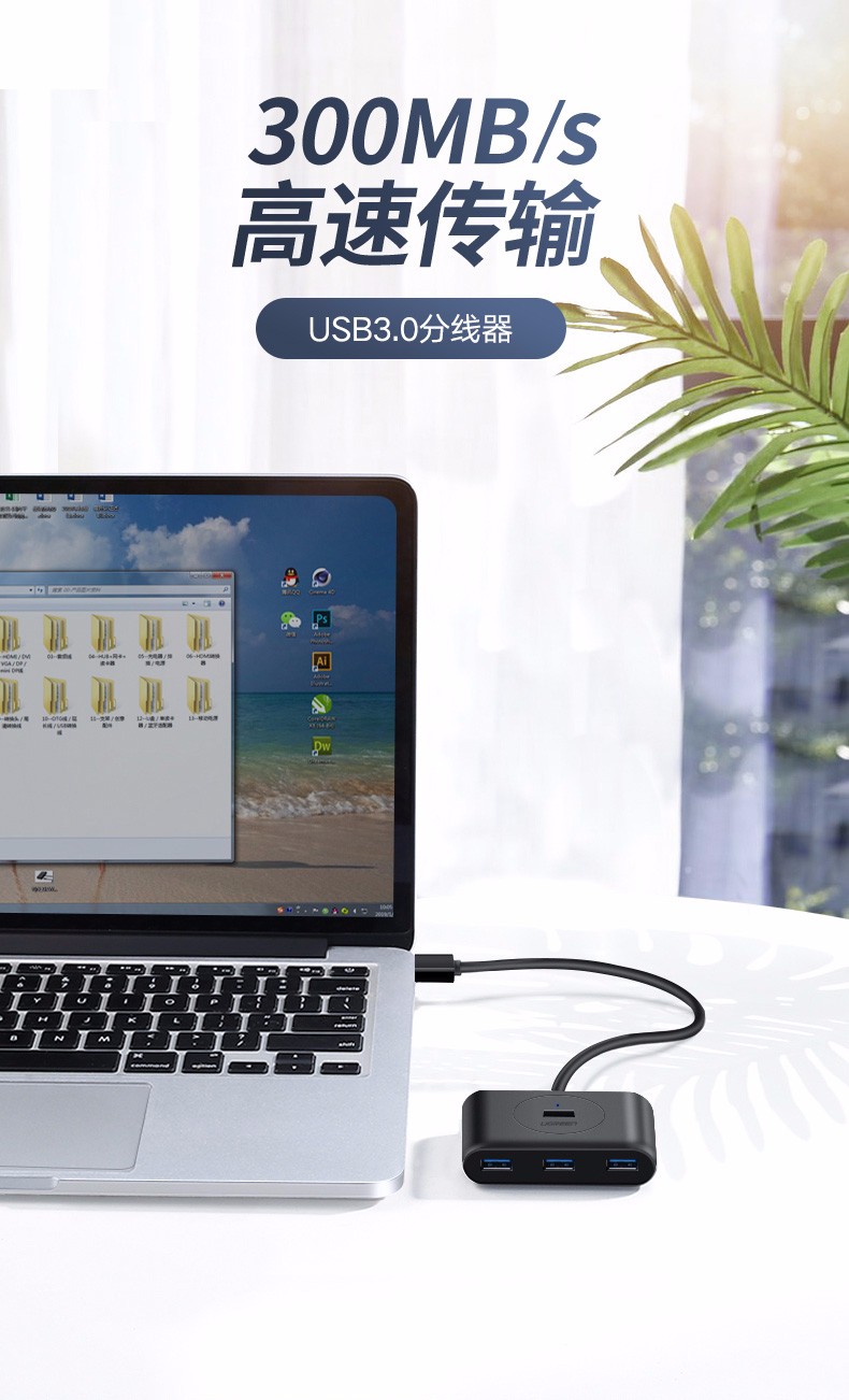 商品名称:绿联 USB3.0分线器 集线器 一拖四多接口扩展坞转换器 HUB集线器 1米