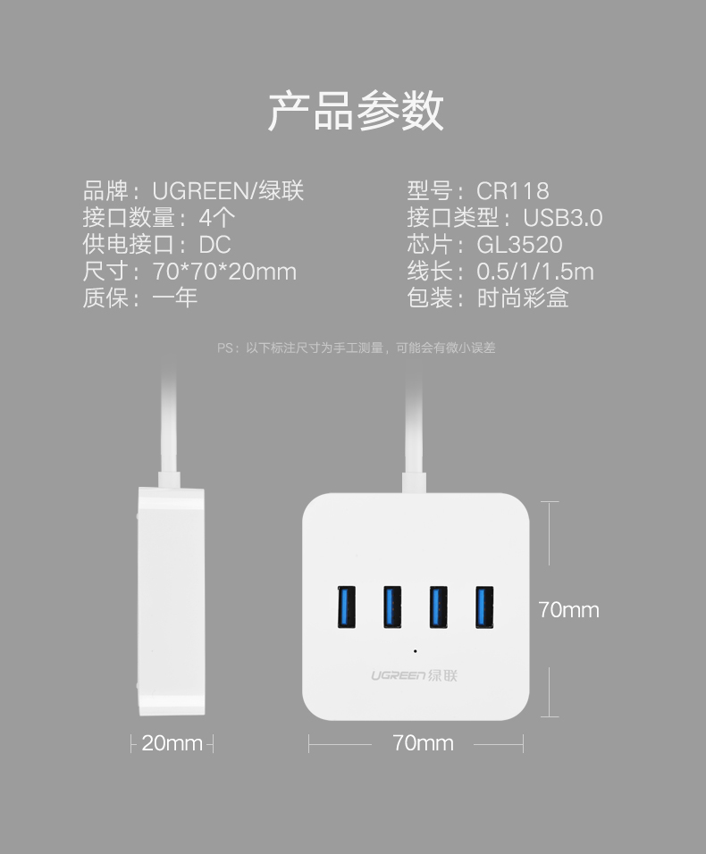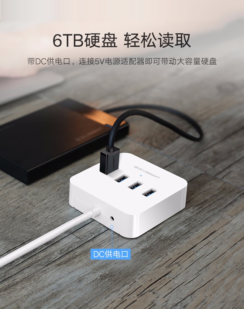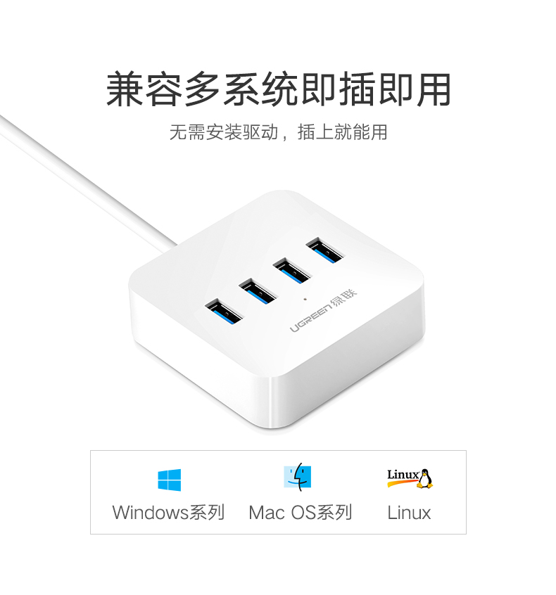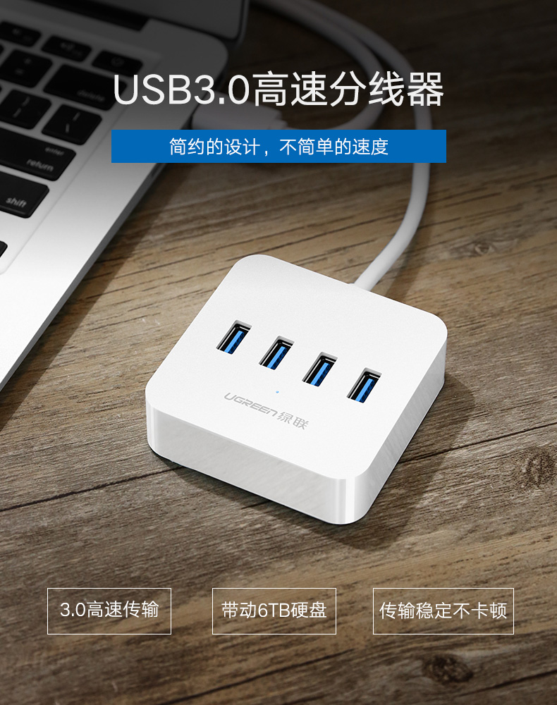 商品名称:绿联(UGREEN) USB3.0分线器 高速4口HUB扩展坞集线器 30221