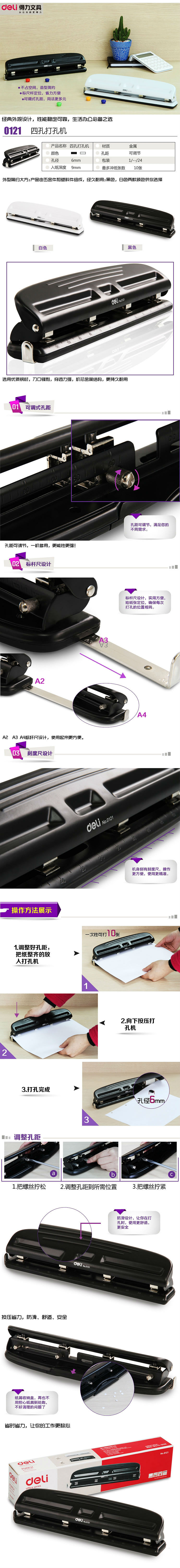 商品名称:得力0121四孔打孔机 φ6mm孔距可调节可打10页