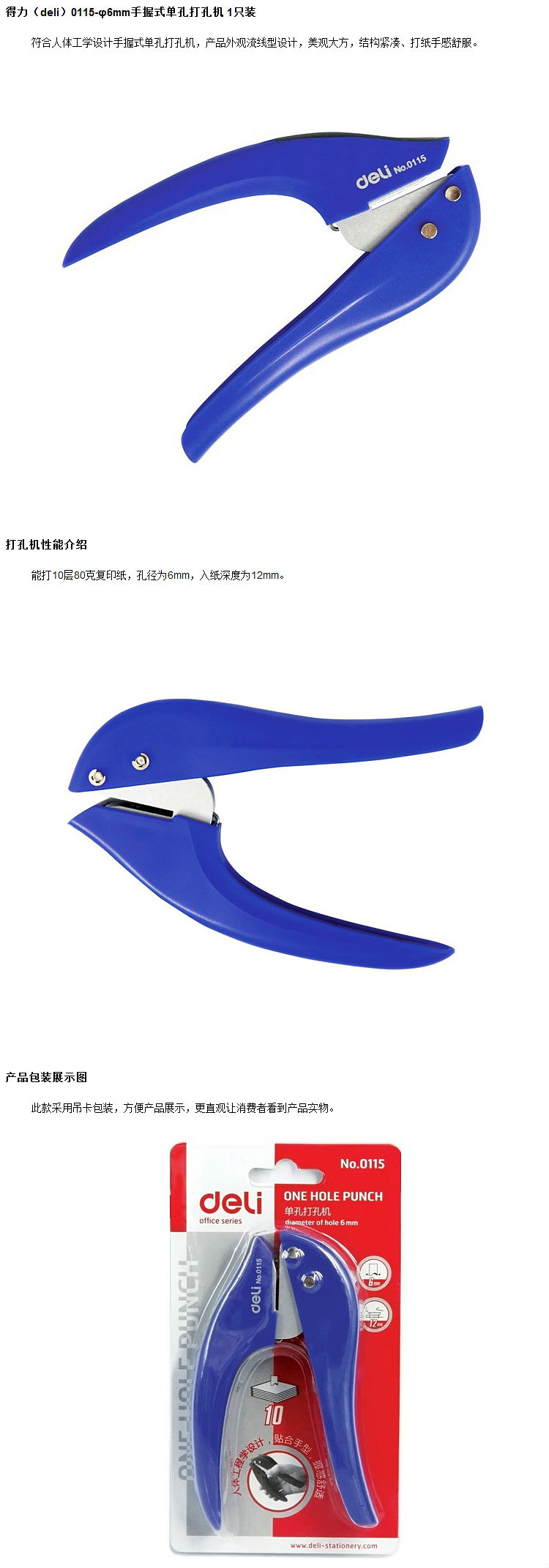 商品名称:得力0115单孔打孔机/打孔器 颜色随机