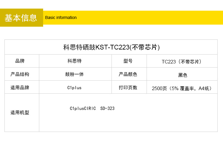商品名称:科思特 TC223粉盒不带芯片 适用C1plusCIRIC SD-323 专业版
