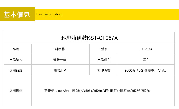 商品名称:科思特 CF287A硒鼓 适用惠普 M506dn/M506X/M506N/MFP M527DN/M527F/M527Z/M527C黑色 专业版