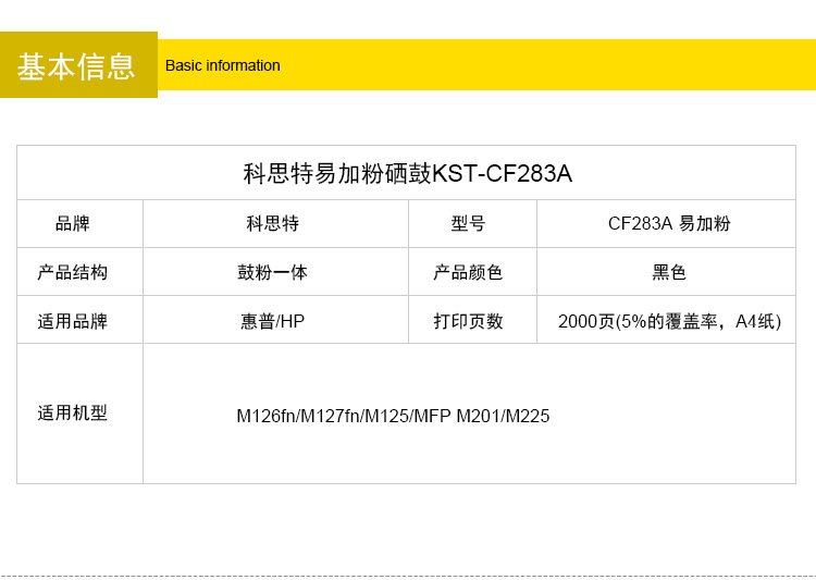 商品名称:科思特 CF283A(易加粉版)硒鼓 适用惠普 M126fn/M127fn/M125/MFP M201/M225黑色 专业版