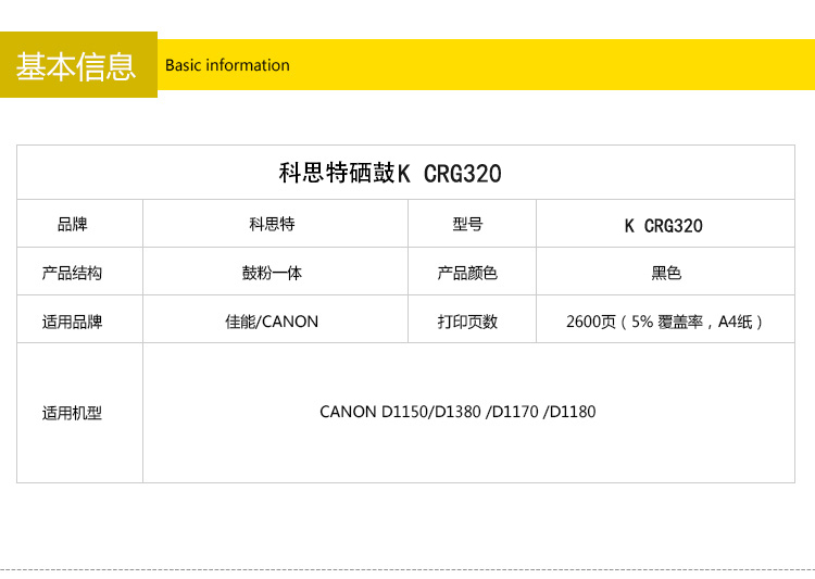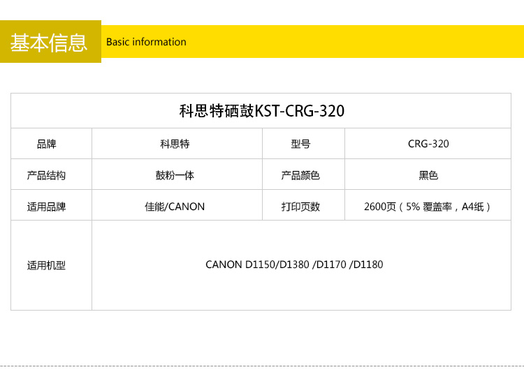 商品名称:科思特 CRG320硒鼓 适用佳能 D1150/D1380 /D1170 /D1180黑色 专业版