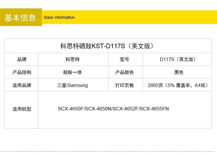 商品名称:科思特 D117S(英文版)硒鼓 适用三星 SCX-4650F/4650N/4652F/4655F黑色 专业版