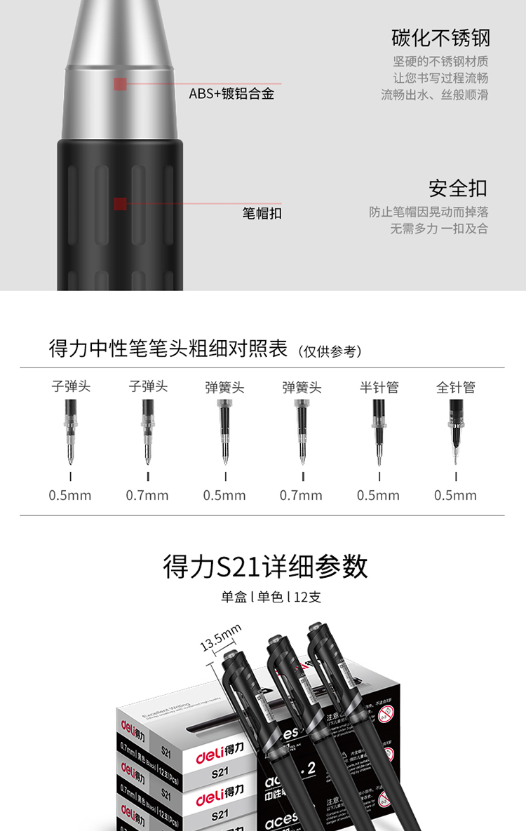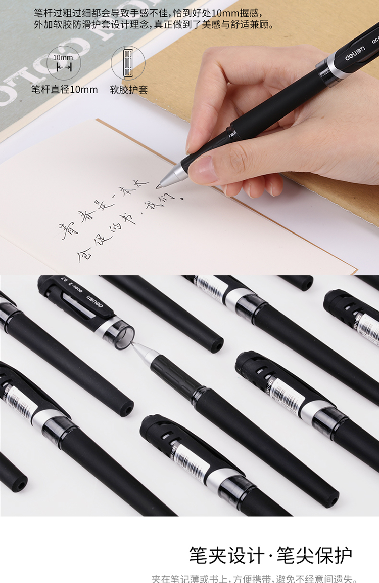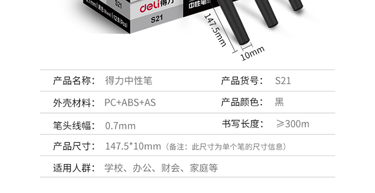 商品名称:得力(deli)0.7mm黑色中性笔水笔签字笔 办公用品 磨砂杆12支/盒(单位:盒)