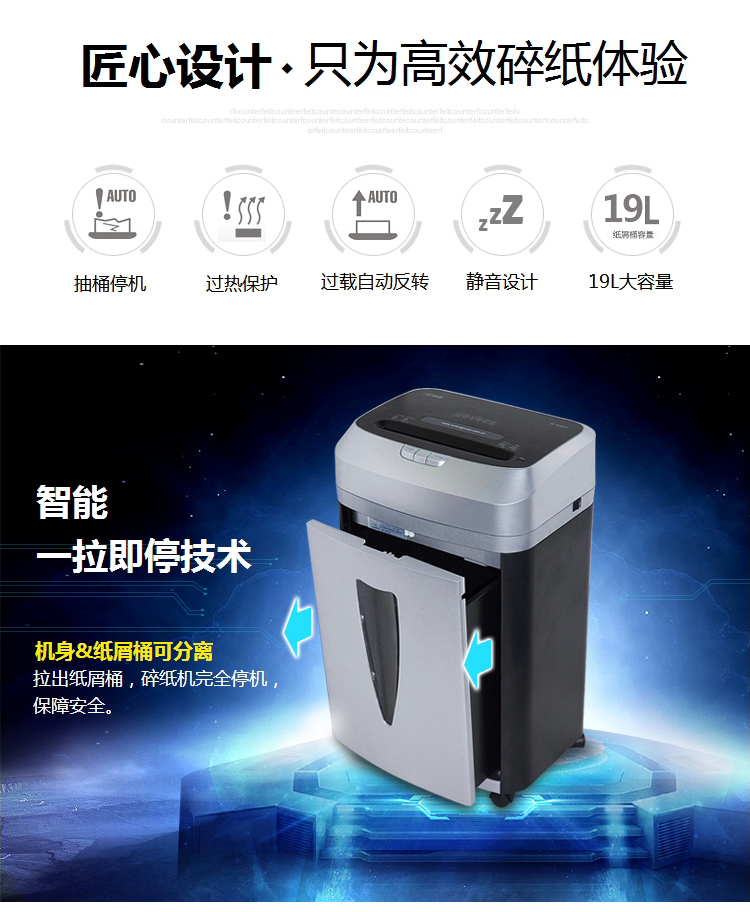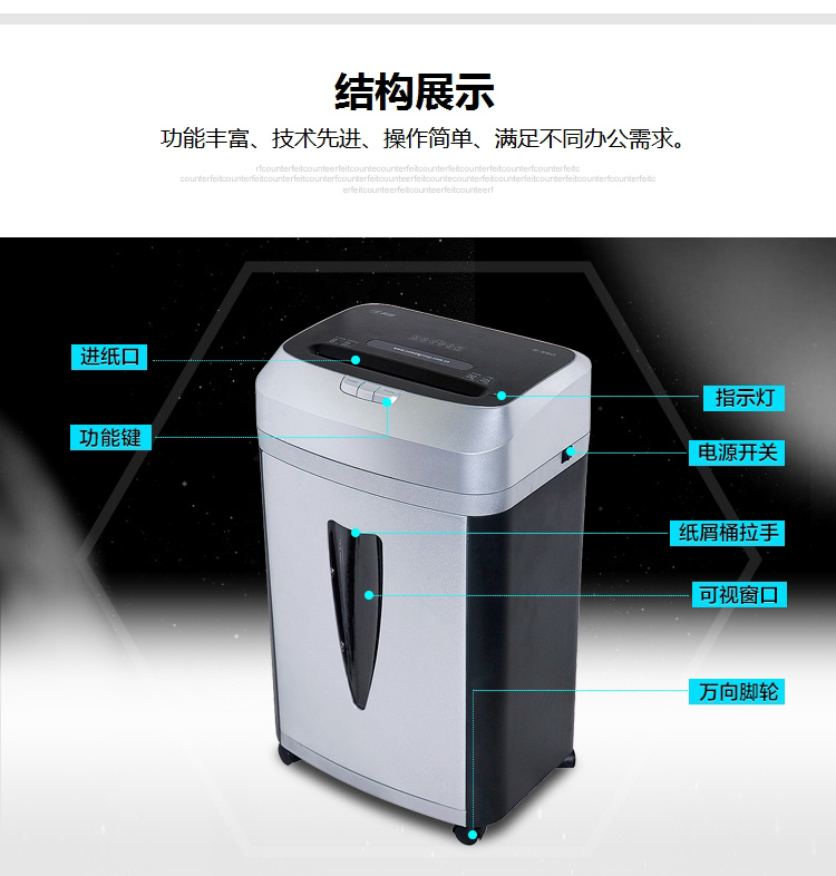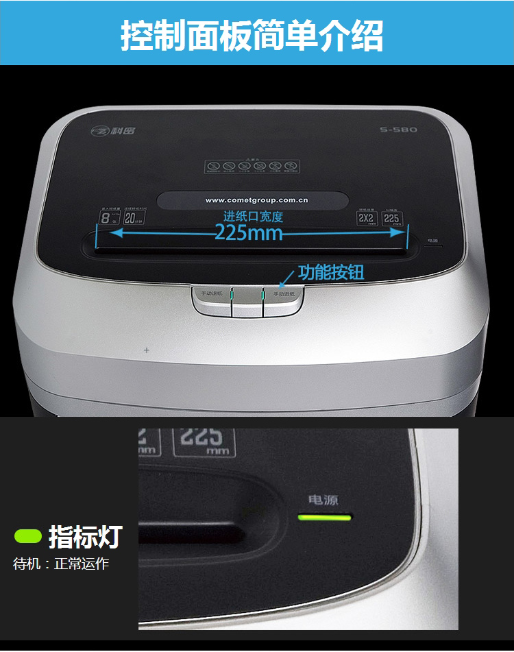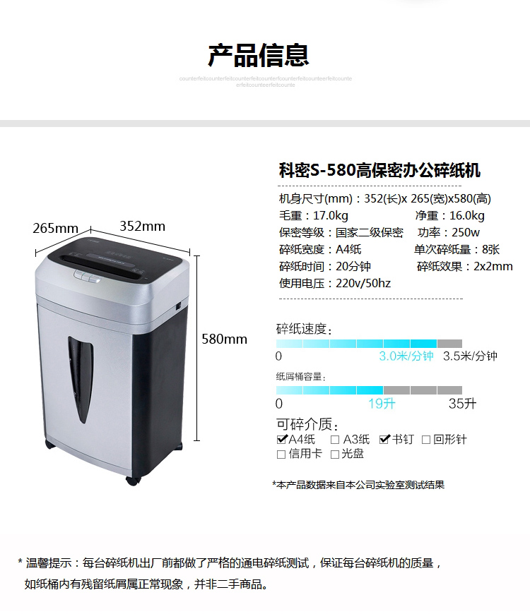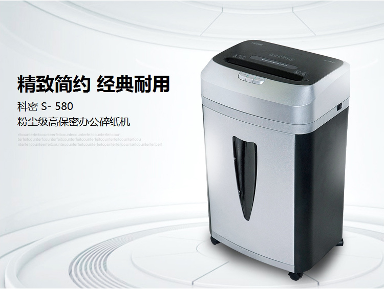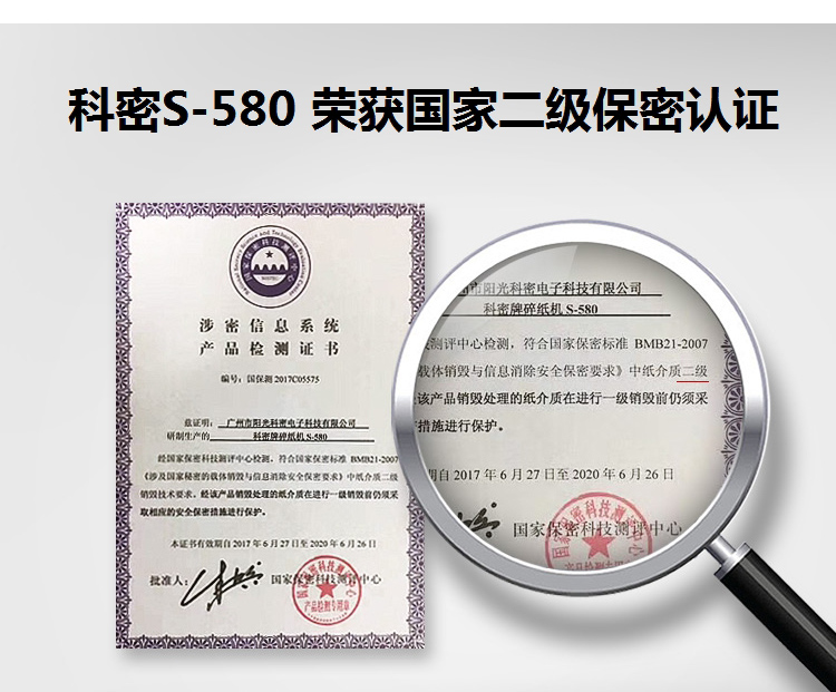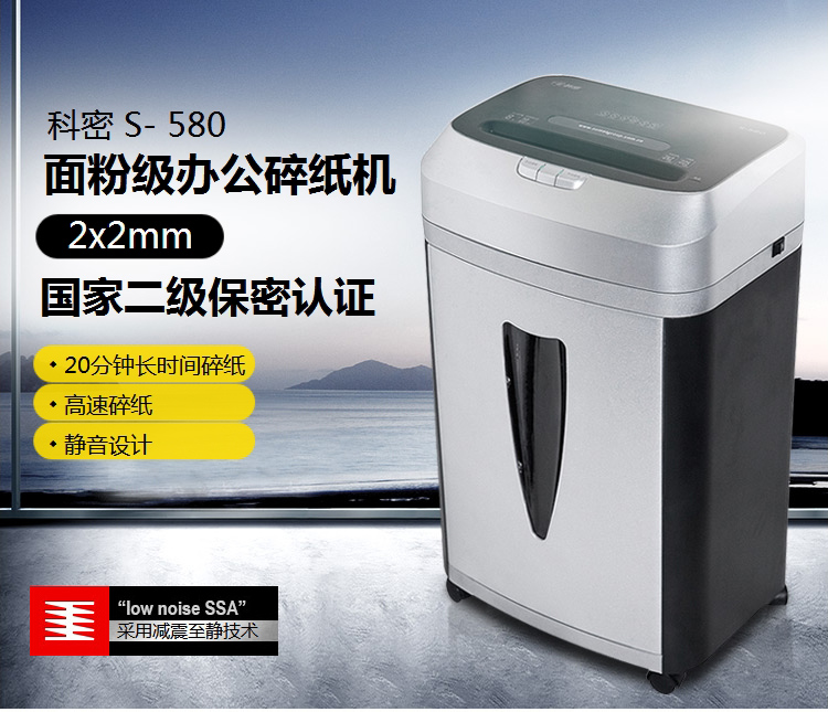 商品名称:科密S-580碎纸机 粉尘级细小颗粒高保密中大型大容量碎纸机 国家二级保密证书