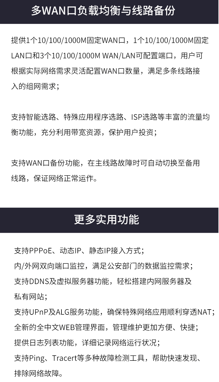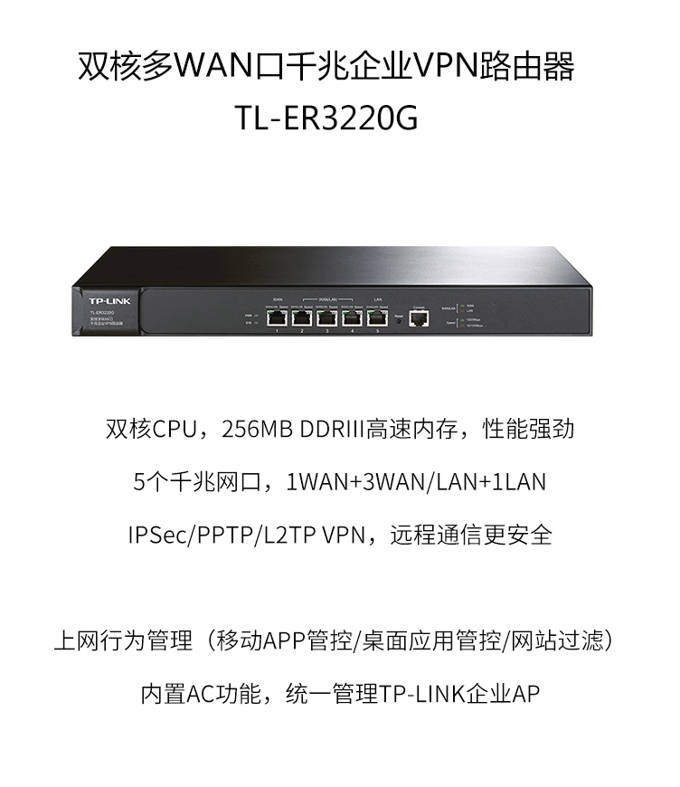 商品名称:TP-LINK TL-ER3220G千兆企业VPN路由器 双核多WAN口 防火墙/VPN/AP管理