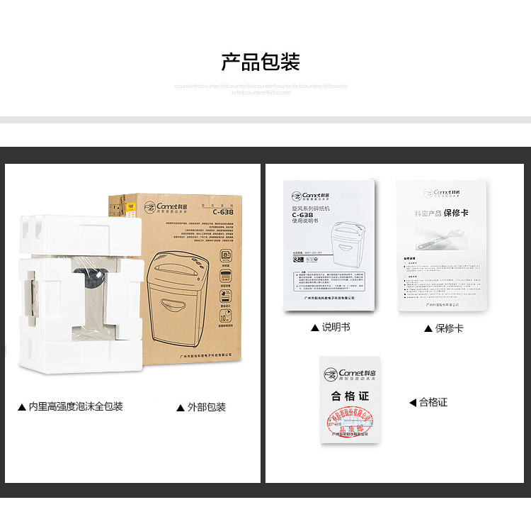 商品名称:科密(comet)C-638 德国5级高保密减震静音碎纸机