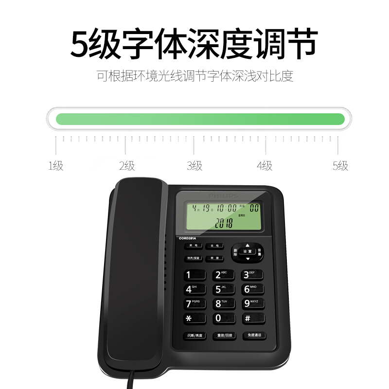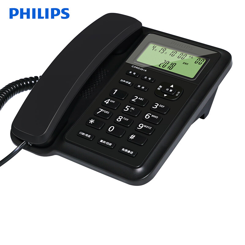 飞利浦(PHILIPS)电话机座机 固定电话 双接口 免电池 CORD281A黑色