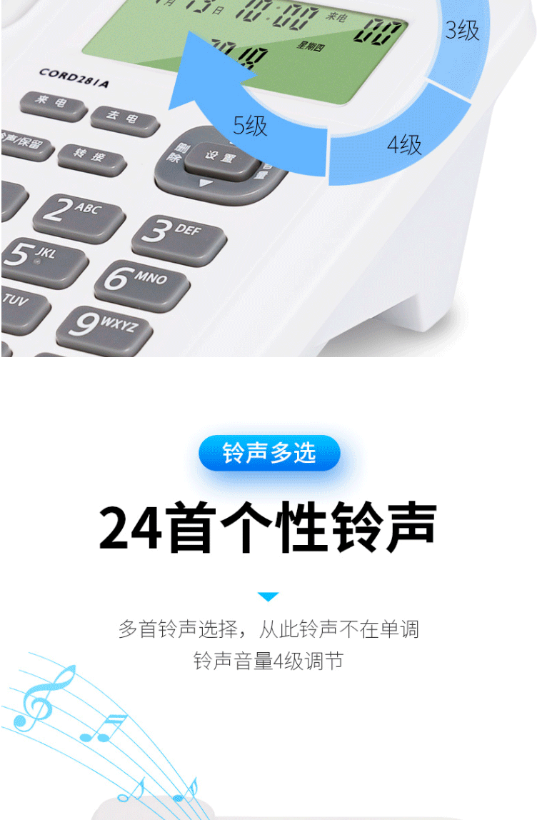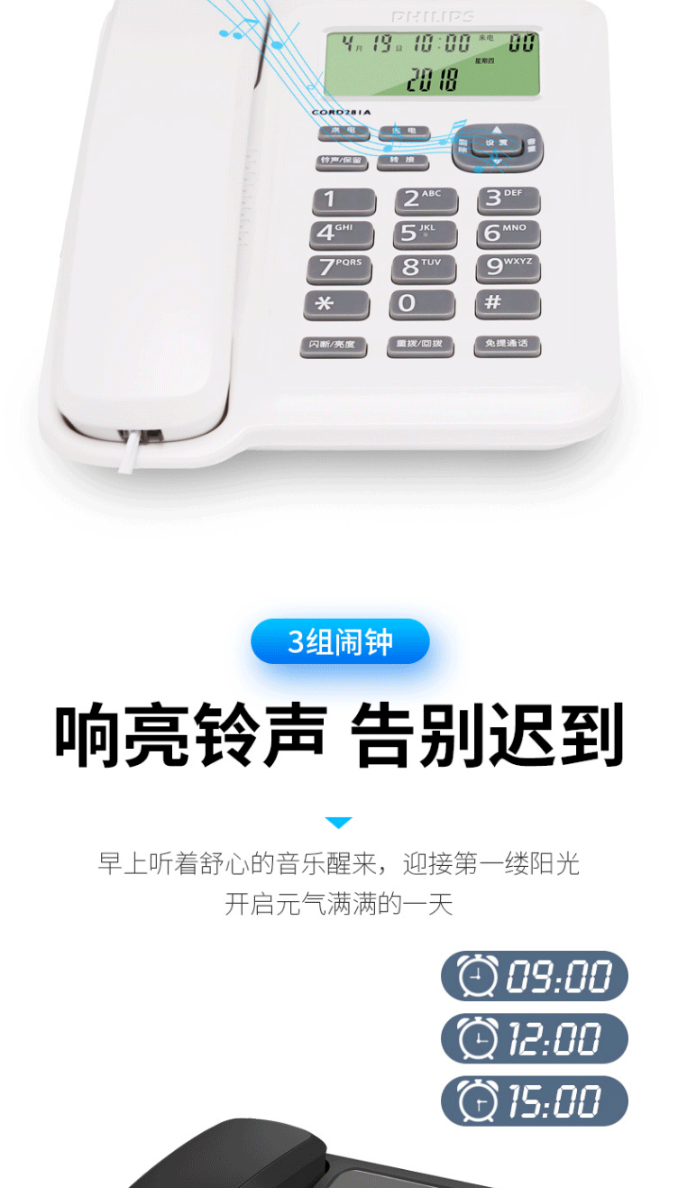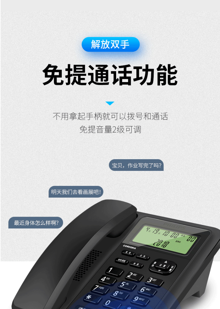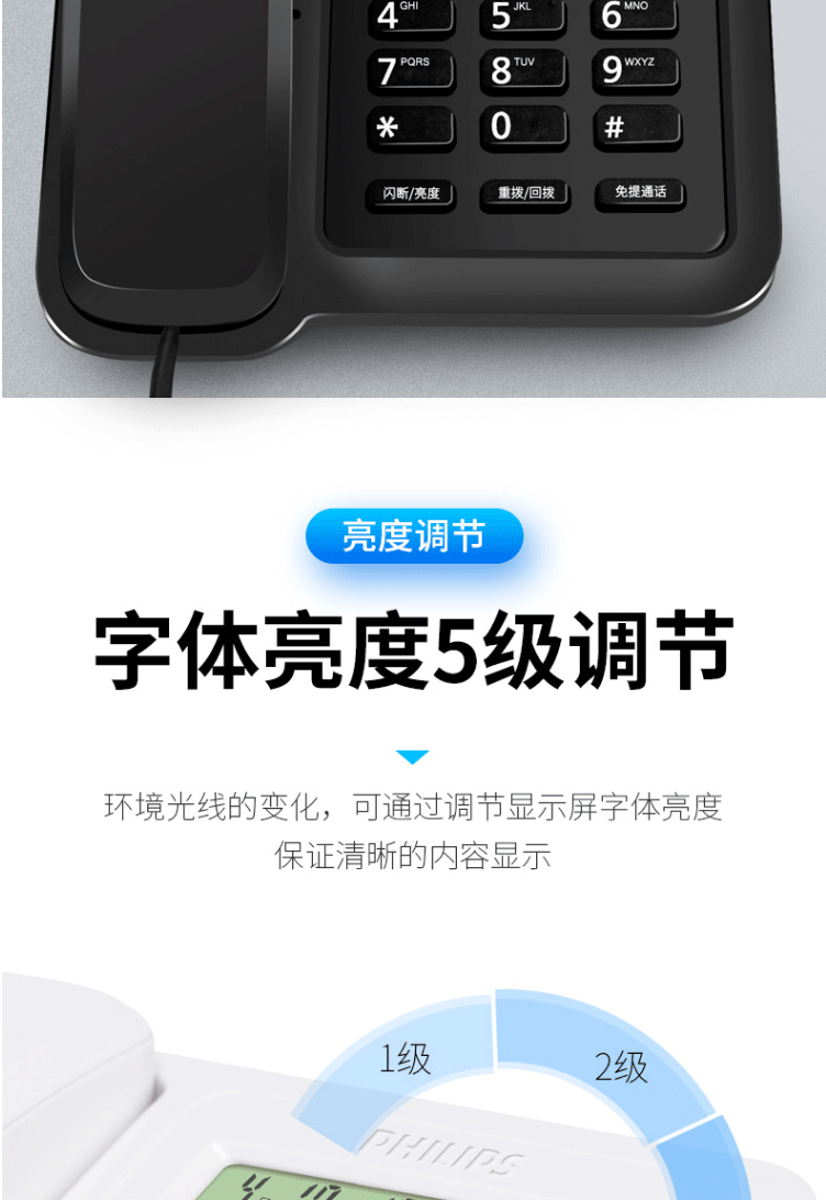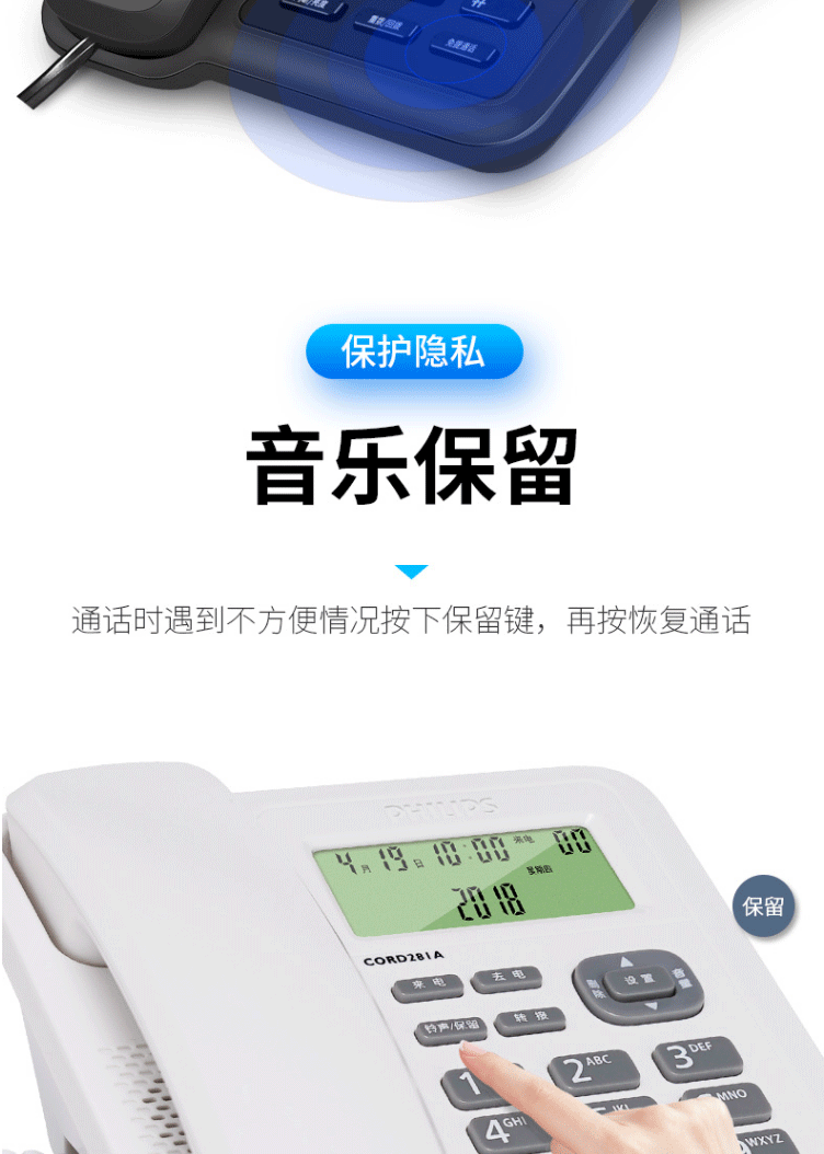 商品名称:飞利浦(PHILIPS)电话机座机 固定电话 双接口 免电池 CORD281A黑色