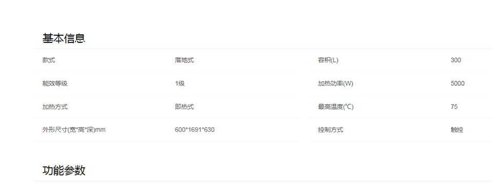商品名称:海尔(Haier)300L落地立式电热水器 中央电热水器速热 ES300F-L (安装免费 材料费另收)