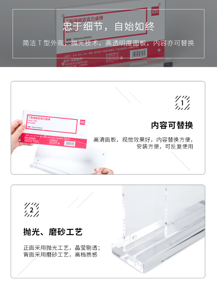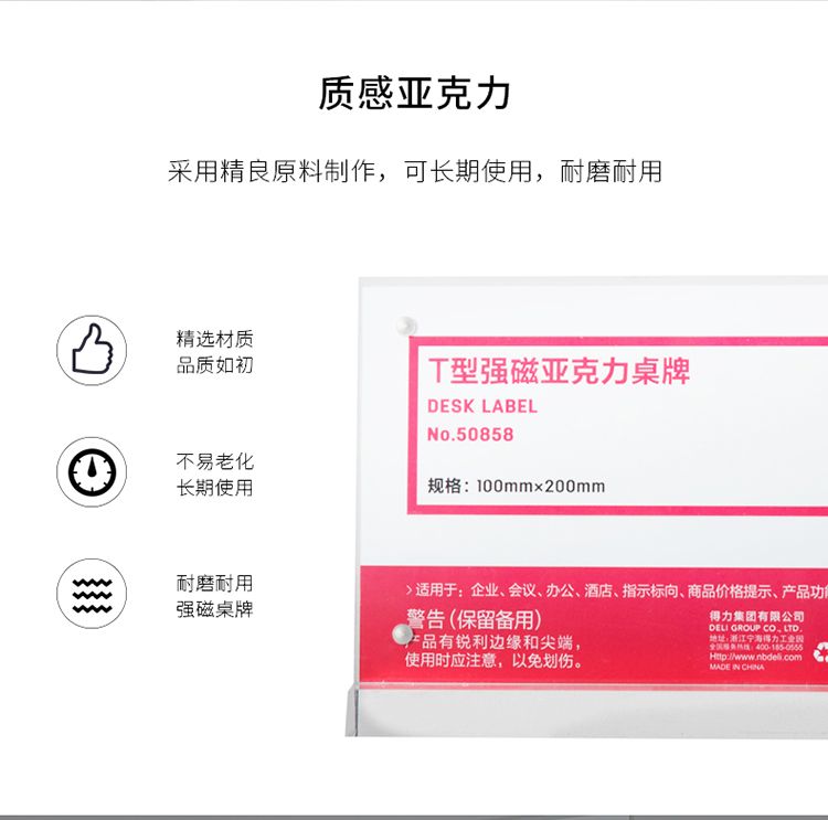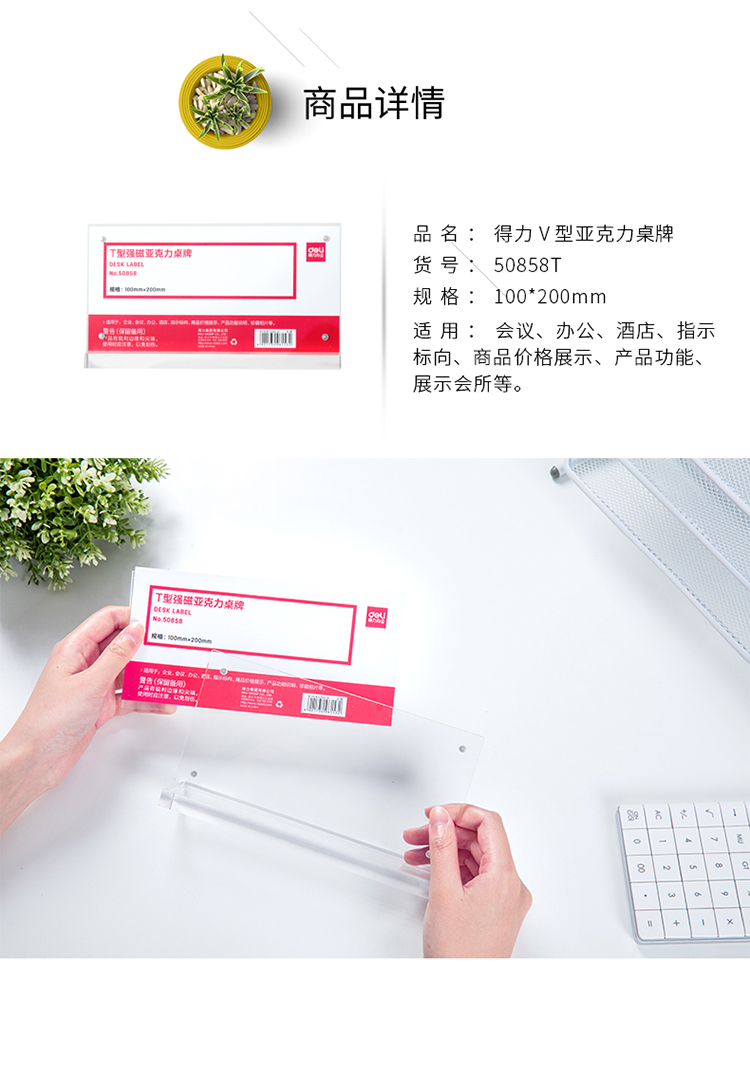 得力(deli)100*200mm T型强磁吸附亚克力桌牌/桌牌架/台卡 单面透明 50858