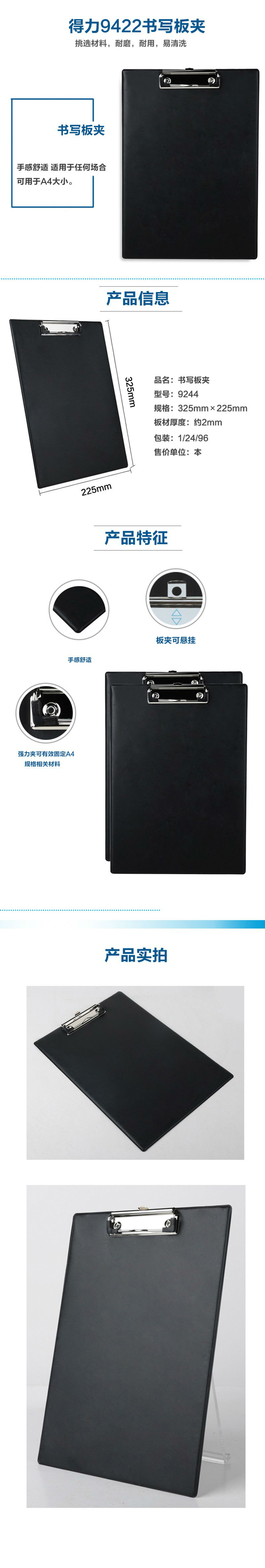 商品名称:得力(deli) 9244 仿皮质感书写板夹 A4文件夹板夹纸板写字板夹垫板 黑色