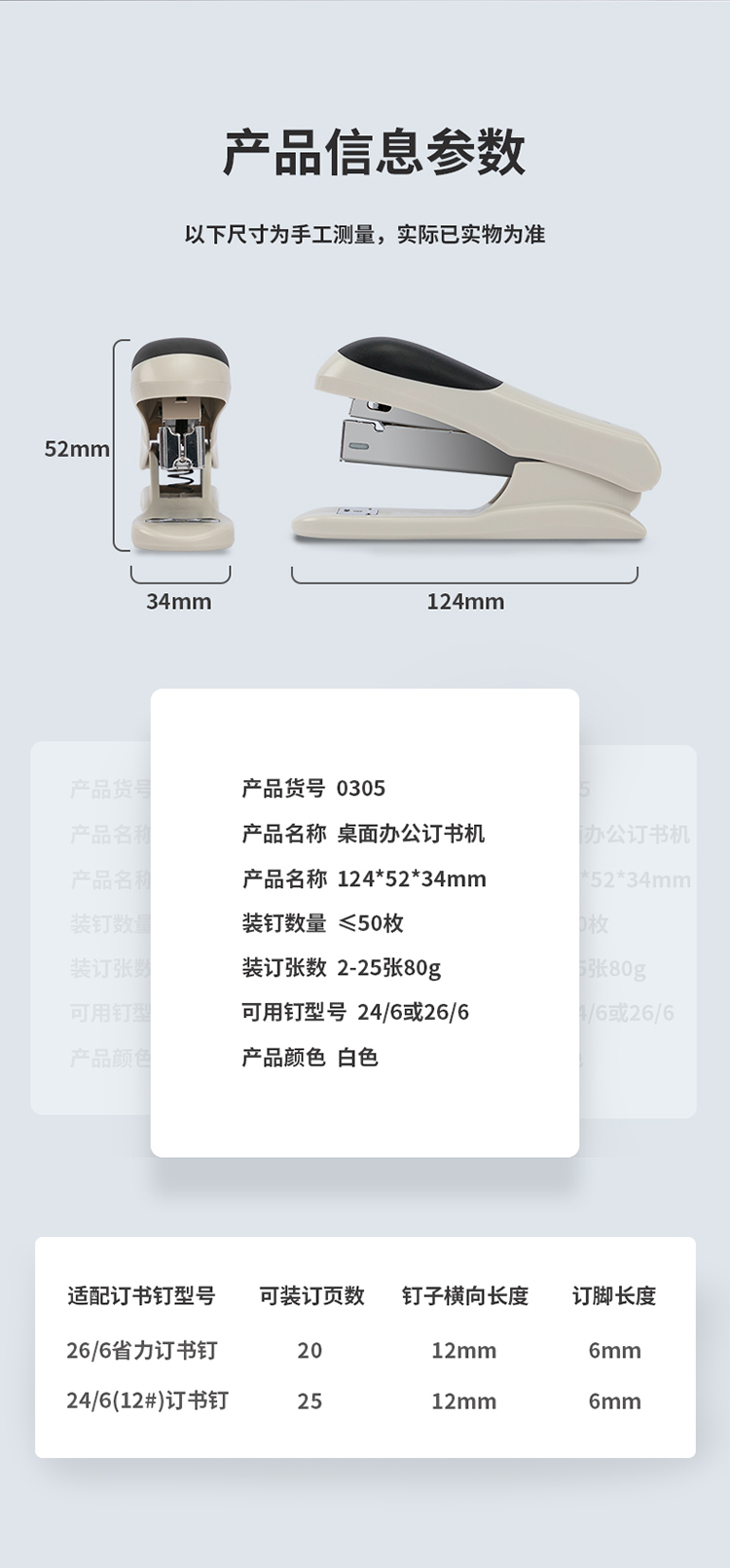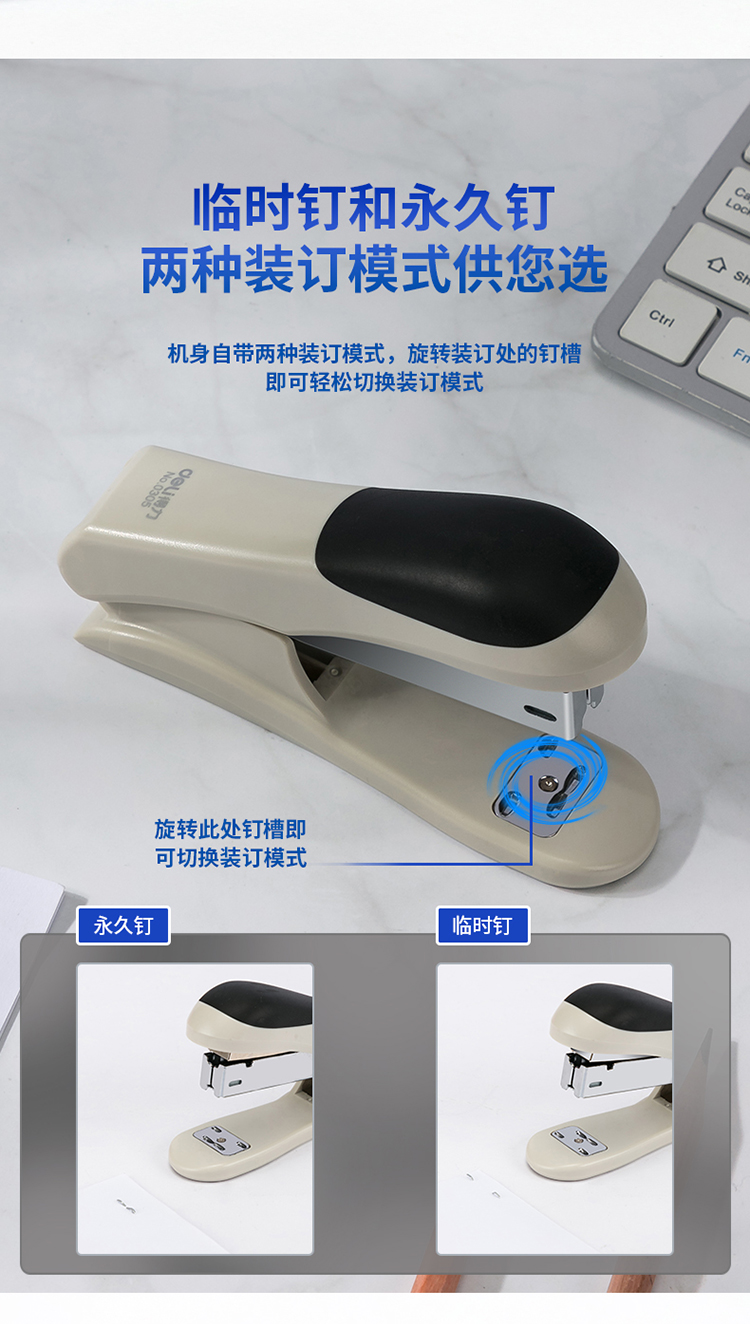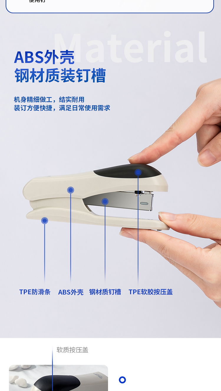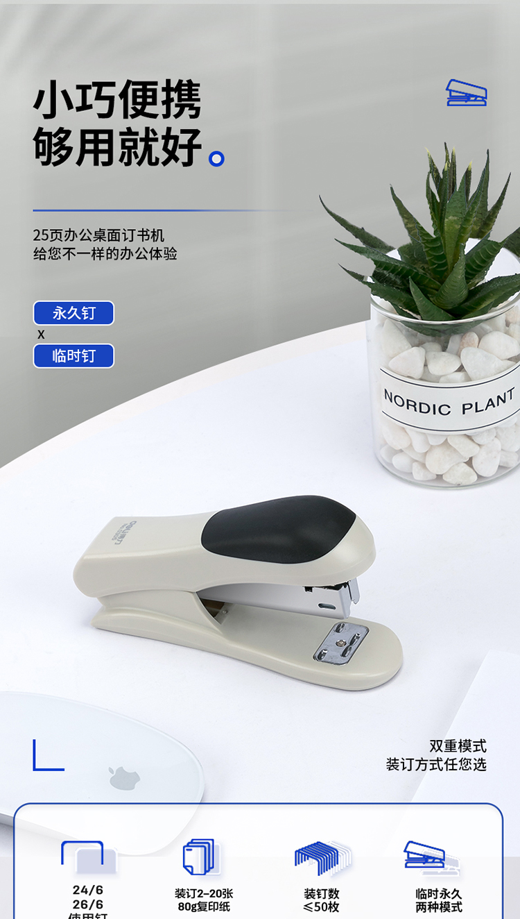 商品名称:得力(deli)12#轻巧便携订书机 25页办公桌面订书器 0305颜色随机