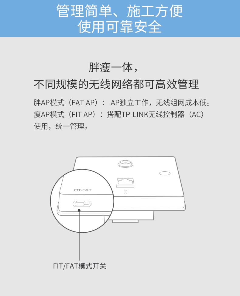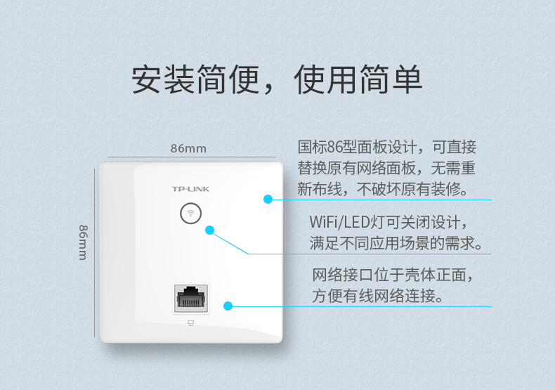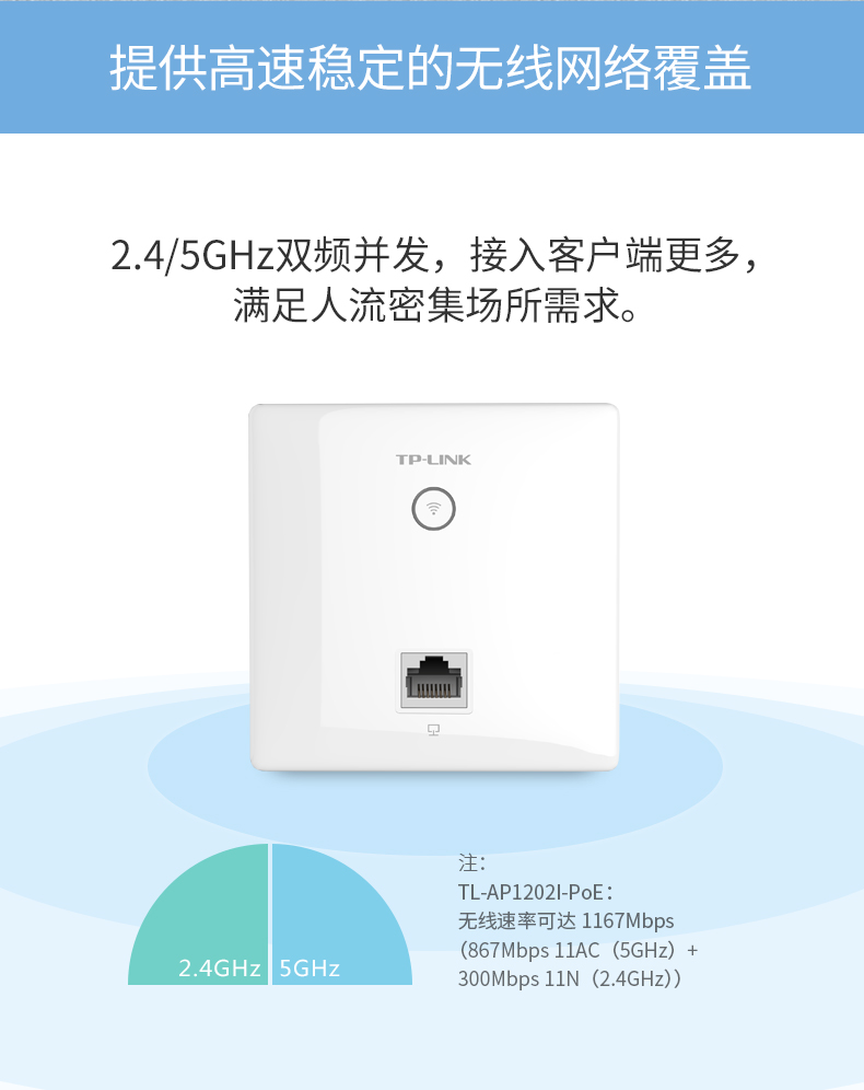 商品名称:TP-LINK TL-AP1202I-PoE 86型面板 1200M 5G双频无线AP POE供电 AC管理 薄款