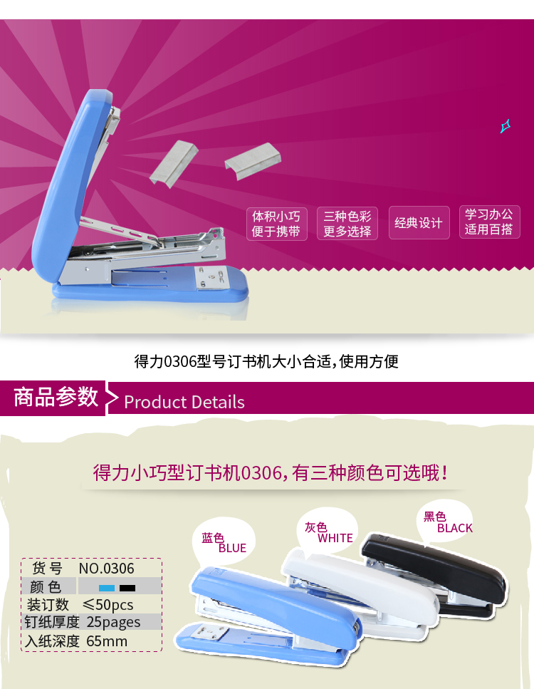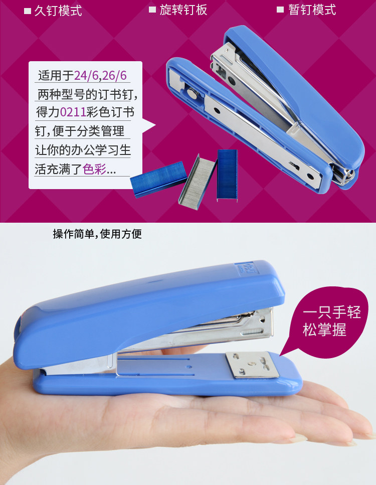 商品名称:得力0306订书机钉书机订书器12号钉书器 颜色随机