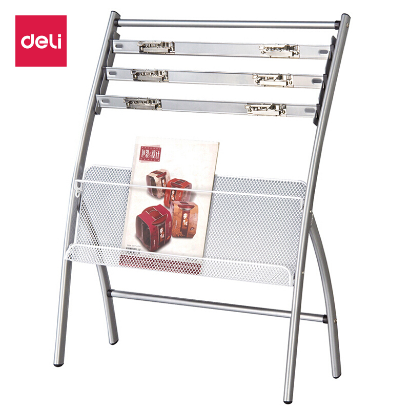 得力(deli)四层铝合金夹条报纸架9301报刊架 图书馆报夹条 宣传杂志展示架 高0.8米