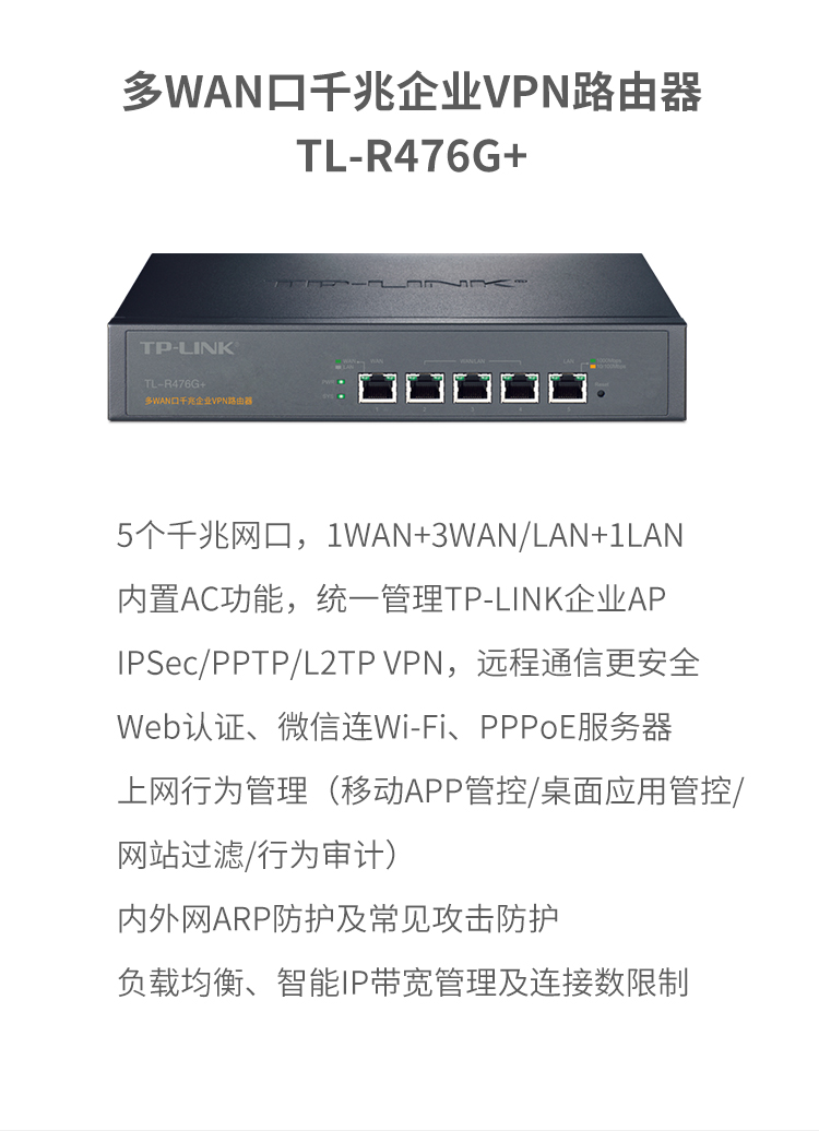 商品名称:TP-LINK多WAN口企业级千兆有线路由器 TL-R476G+