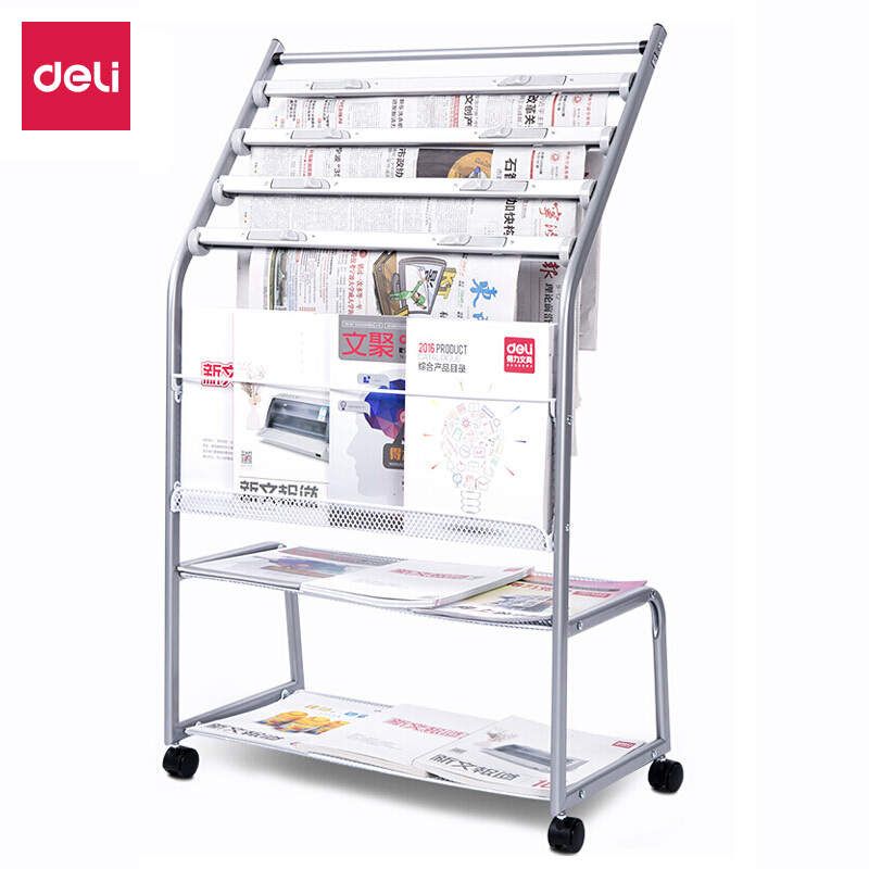 得力(deli)五层铝合金夹条报纸架 9304报刊架 图书馆报夹条置 宣传资料杂志展示架 高1.05米