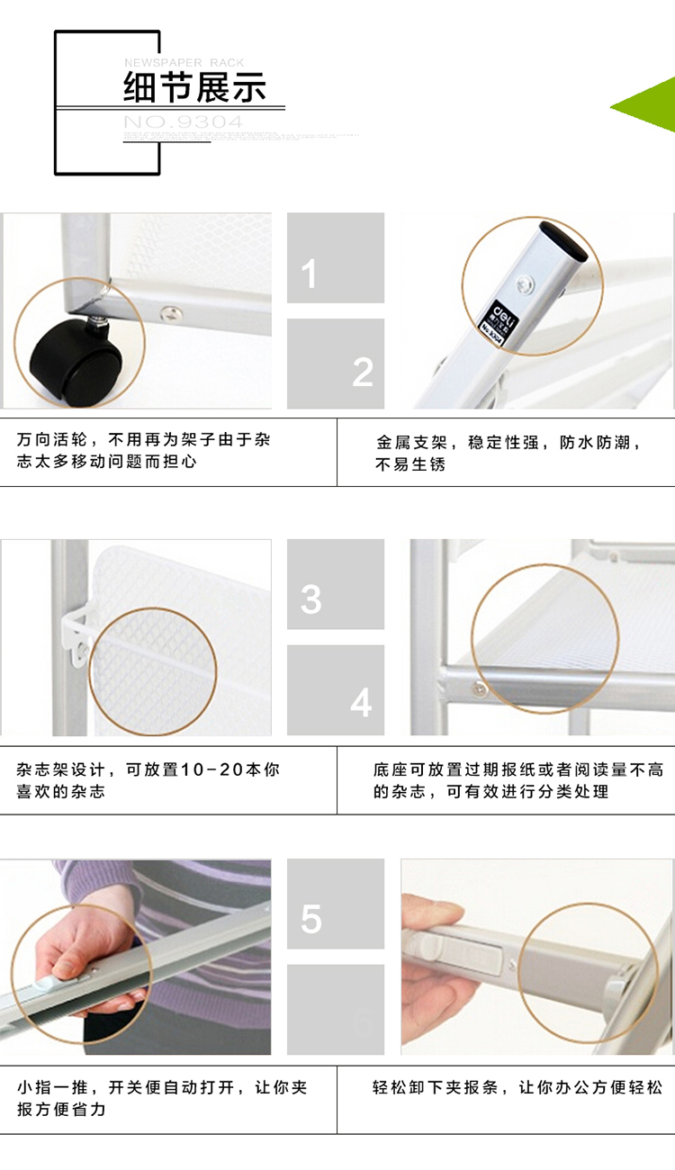 商品名称:得力(deli)五层铝合金夹条报纸架 9304报刊架 图书馆报夹条置 宣传资料杂志展示架 高1.05米