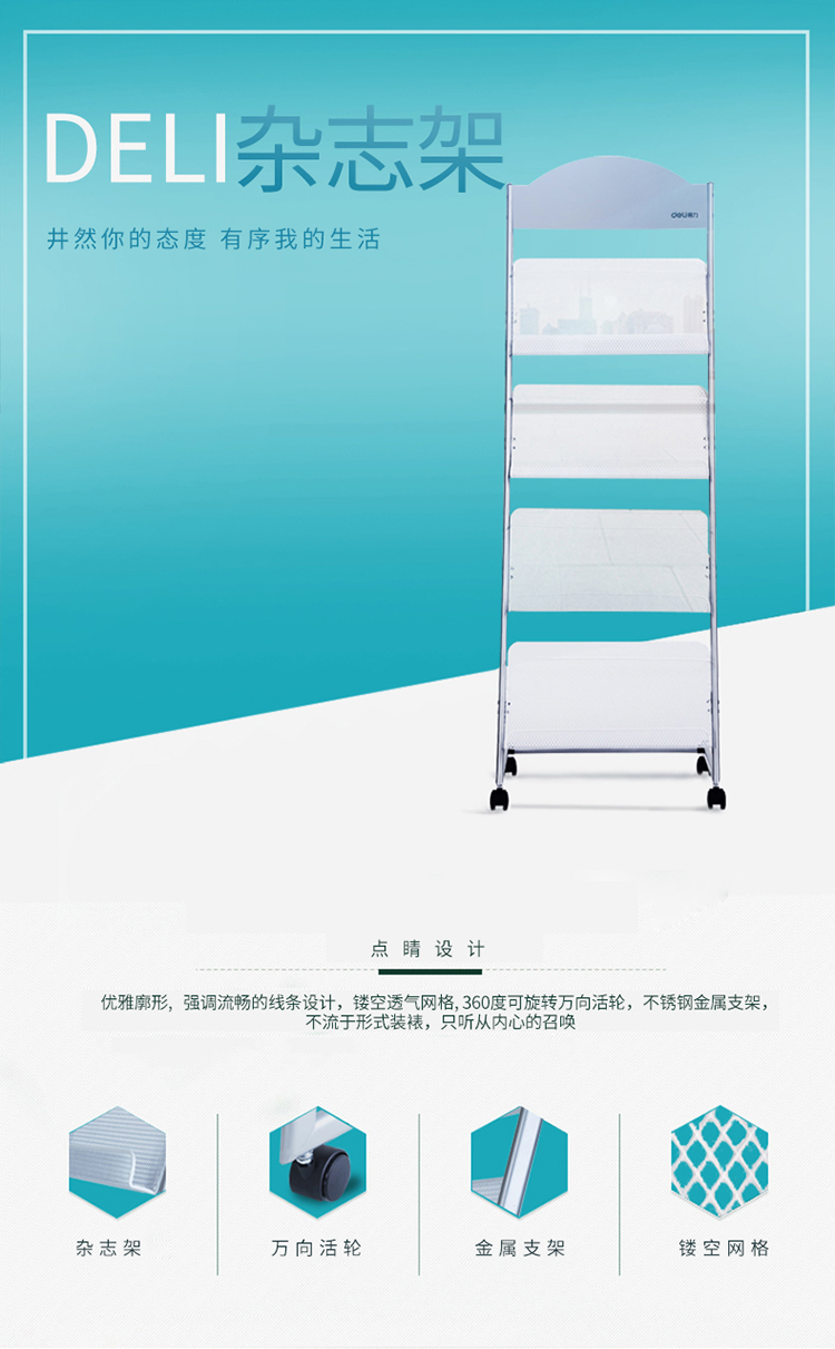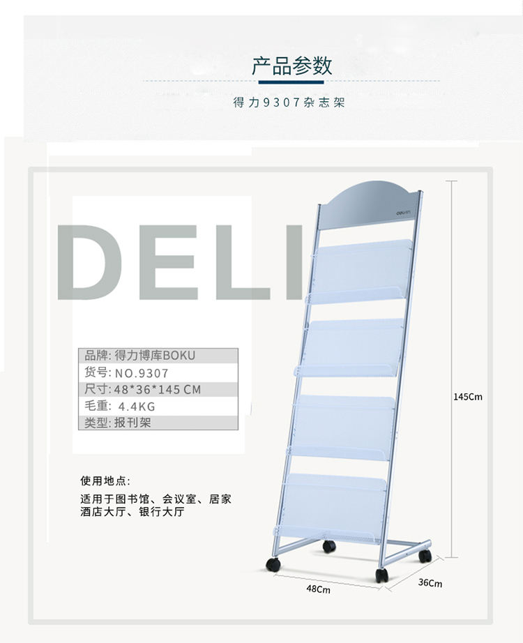 商品名称:得力(deli)四层金属报刊杂志架9307书报架 宣传册展示架 落地资料架 高1.45米
