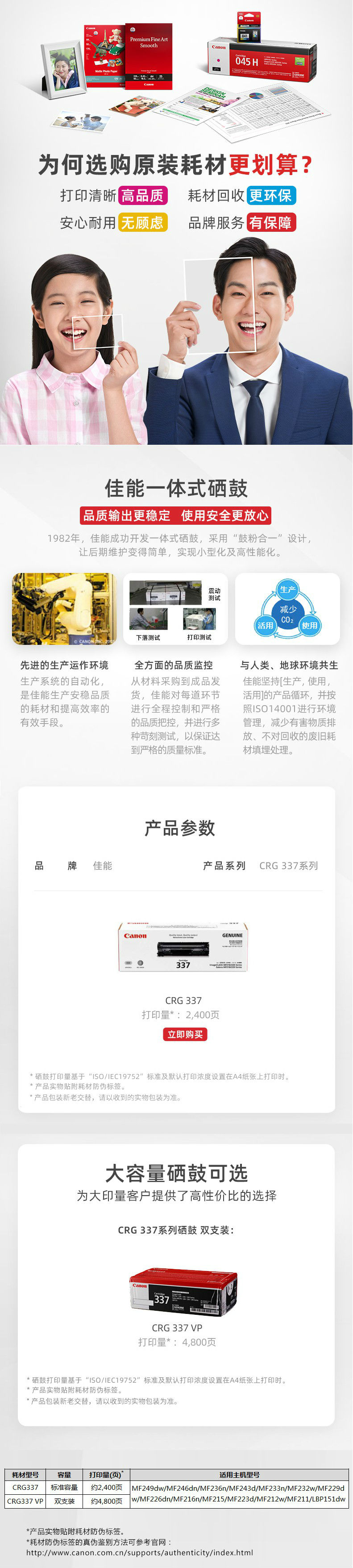 商品名称:佳能(Canon)原装硒鼓CRG337(适用MF249dw/MF246dn/MF243d/MF236n)