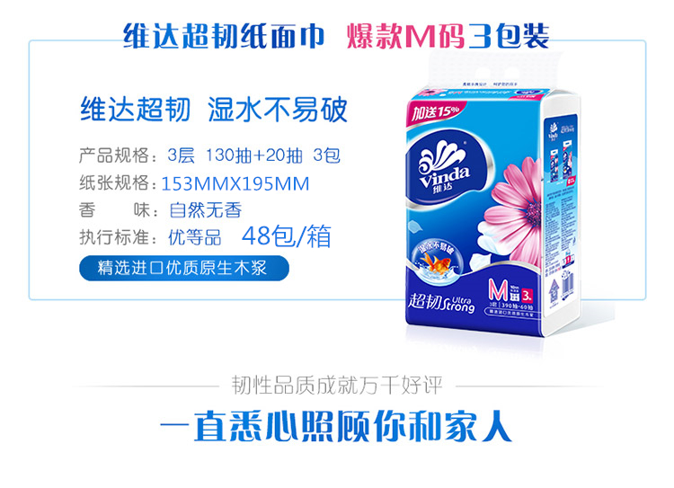商品名称:维达V2182 M码纸抽130+20抽 纸抽 餐巾纸 面巾纸 软纸抽 软抽纸 抽取式面巾纸 中号 48包/箱
