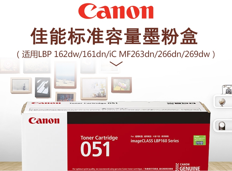 佳能(Canon)CRG-051 标准容量原装黑色墨粉(适用LBP 162dw/161dn/iC MF263dn/266dn/269dw机型) 约1700页