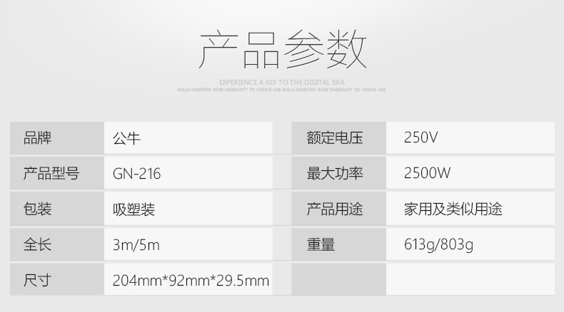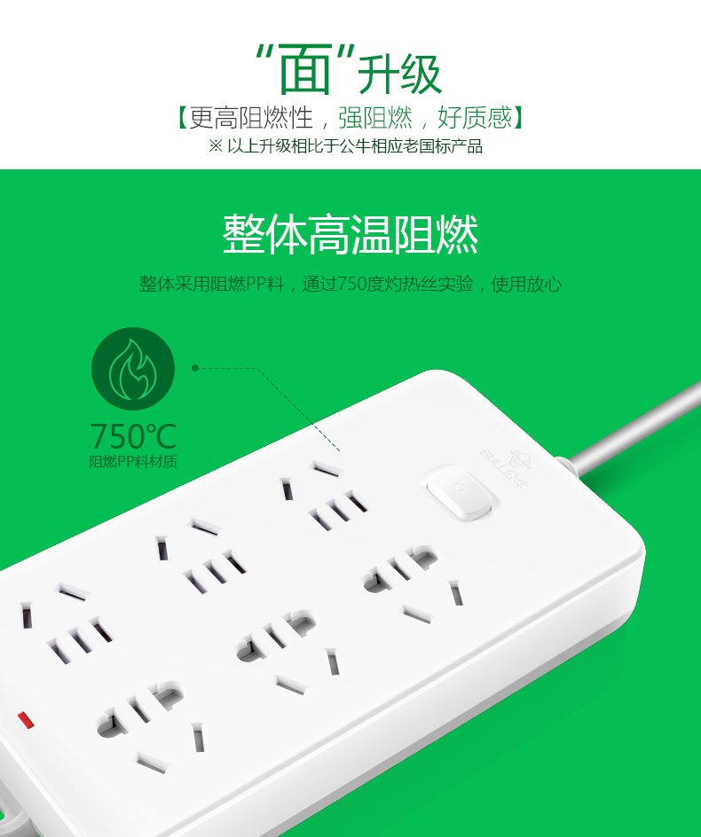 商品名称:公牛(BULL)GN-216插排 3米六位总控拖线板 电源插座