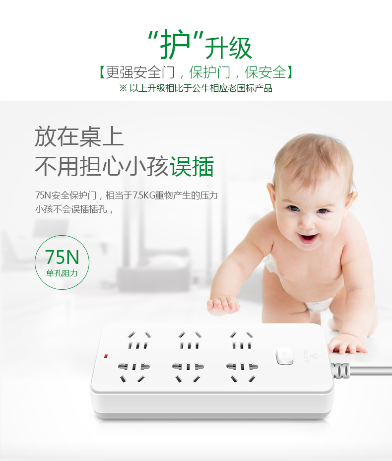 公牛电源插座 3米总控六位3口USB GNV-UUB126