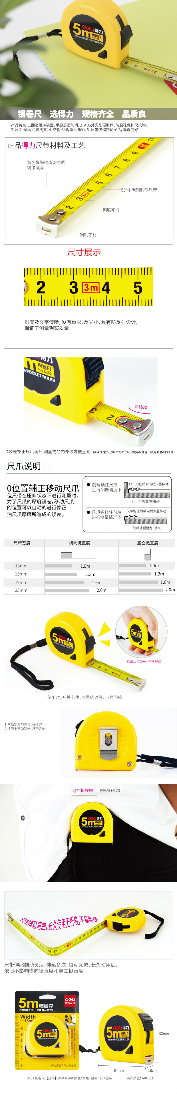 商品名称:得力(deli) 8203 钢卷尺 5米尺子(单位:个)