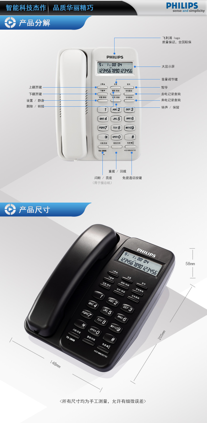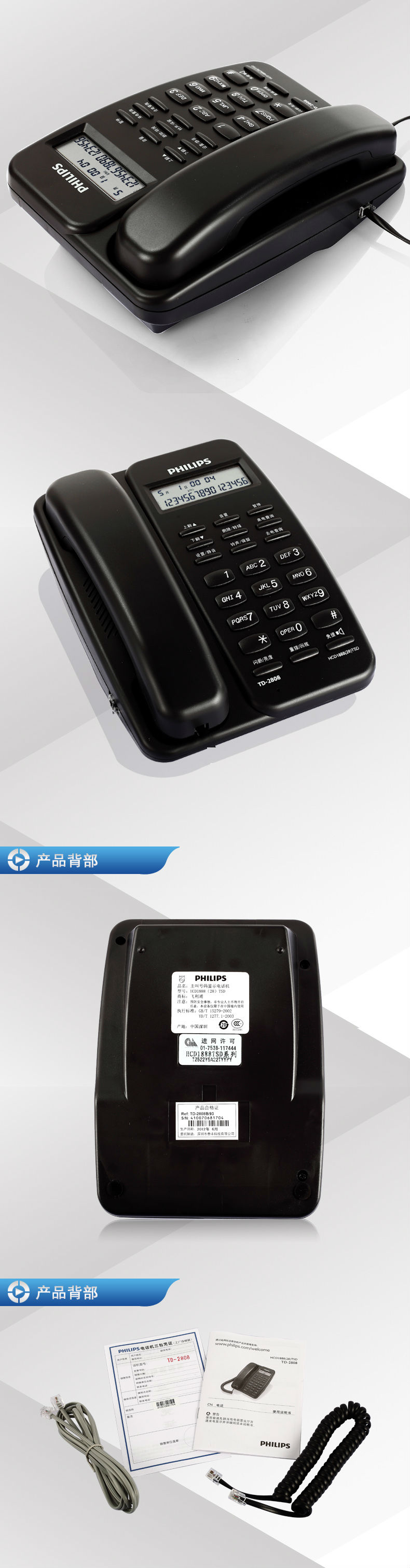 商品名称:飞利浦电话机 CN-TD-2808 固定电话 办公家用 黑色