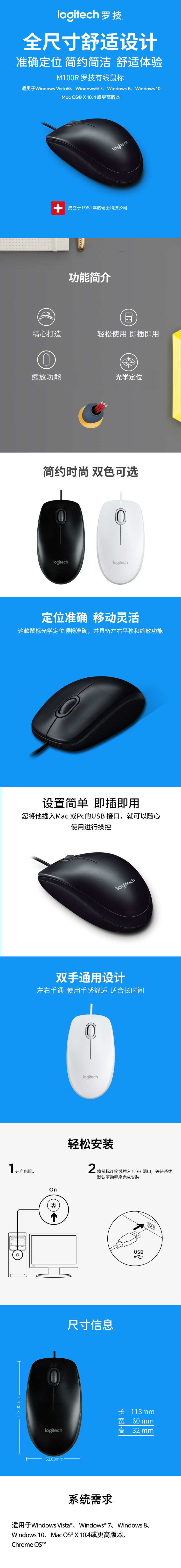 商品名称:罗技(Logitech) M100r 即插即用 光电鼠标 黑色