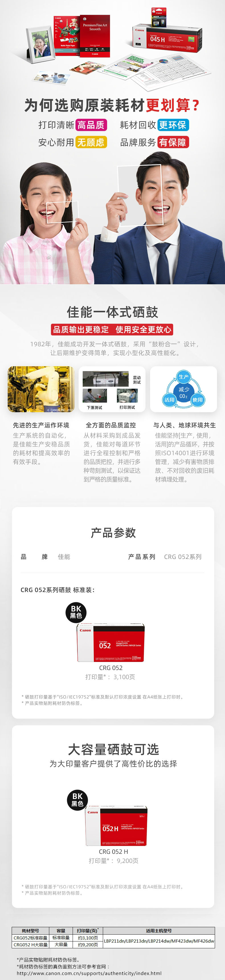 商品名称:佳能(Canon)CRG052 原装硒鼓 (适用于LBP211dn、LBP213dn、LBP214dw、iC MF423dw、iC MF426dw)