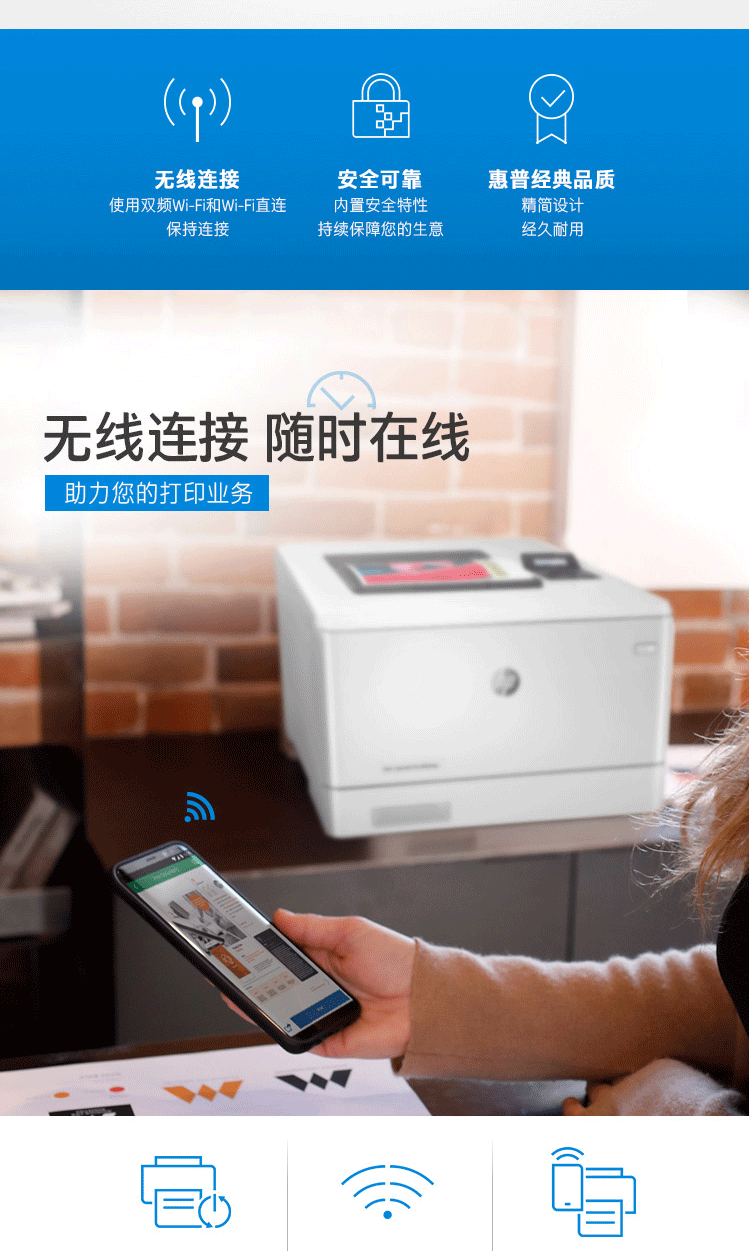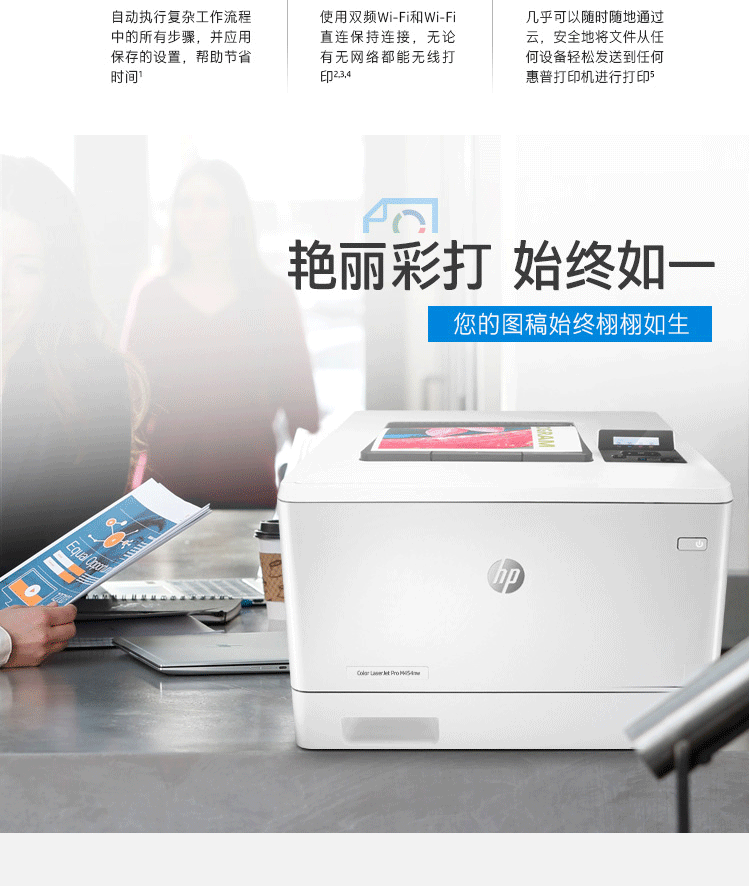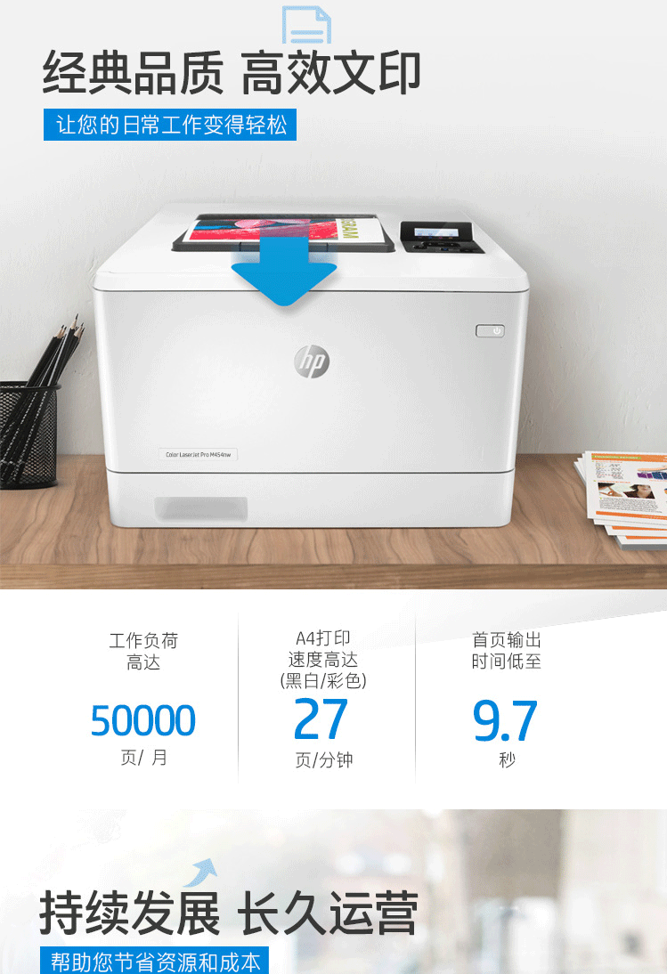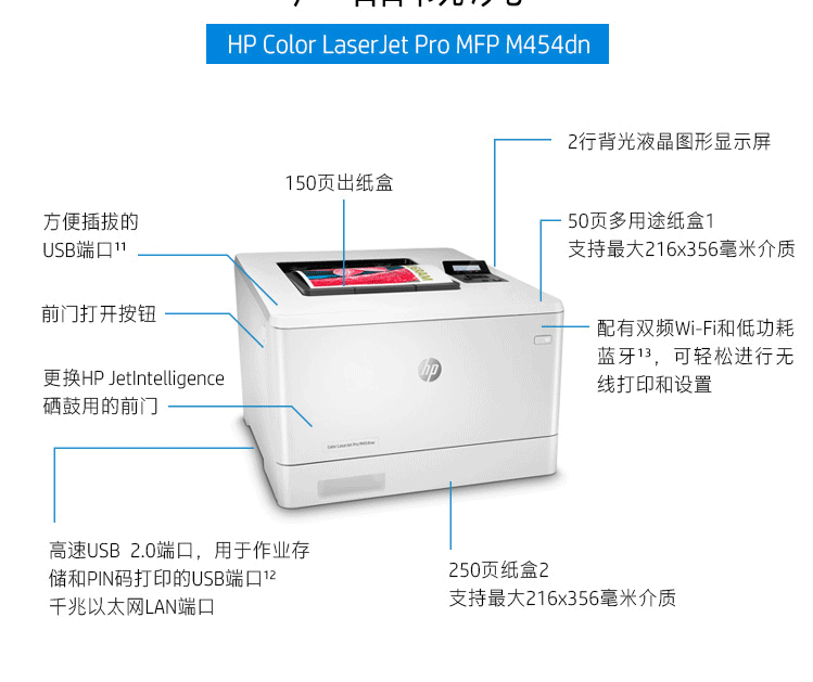 商品名称:惠普(HP)M454nw彩色激光打印机 A4彩色打印 液晶显示 有线网络/无线连接