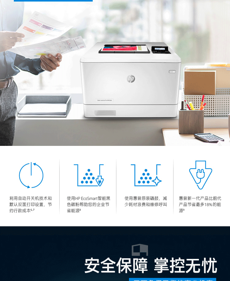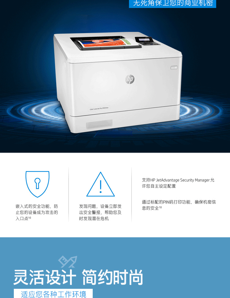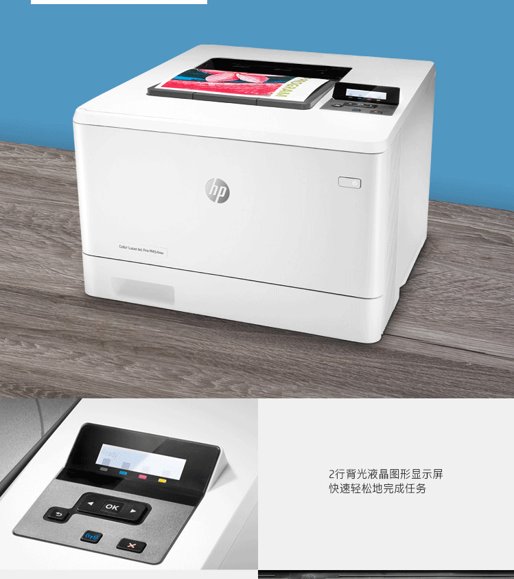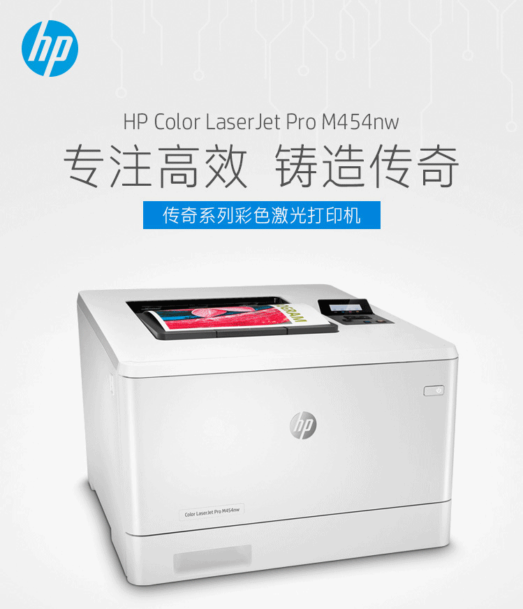 惠普(HP)M454nw彩色激光打印机 A4彩色打印 液晶显示 有线网络/无线连接