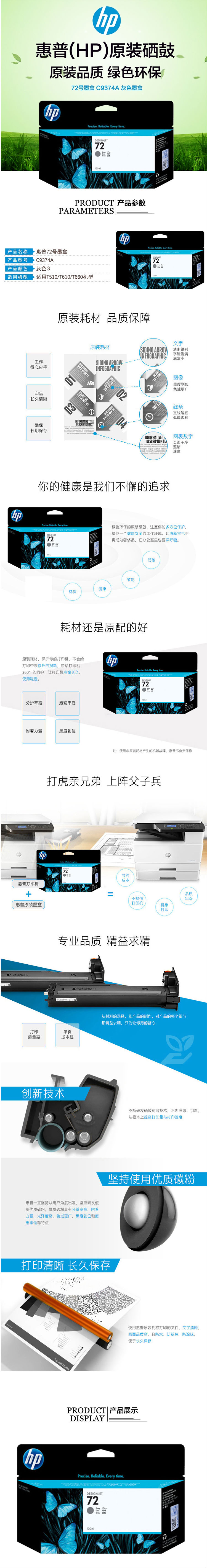 惠普(HP)C9374A(72) 灰色墨盒(适用于:T510/T610/T660)