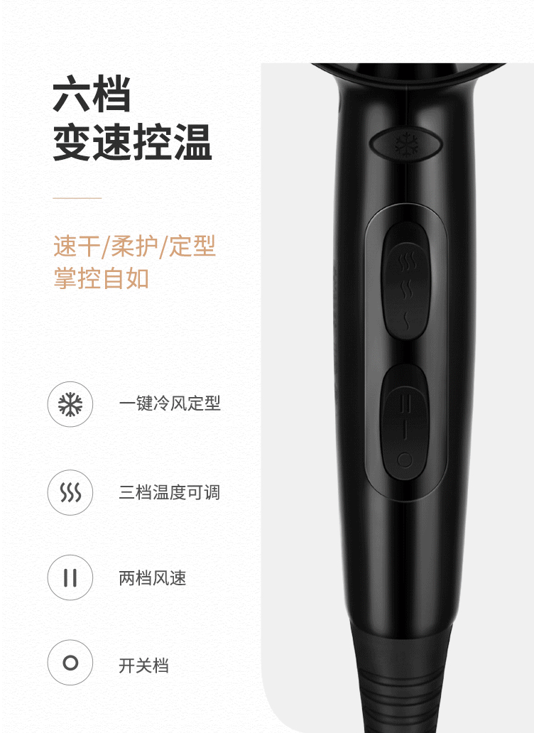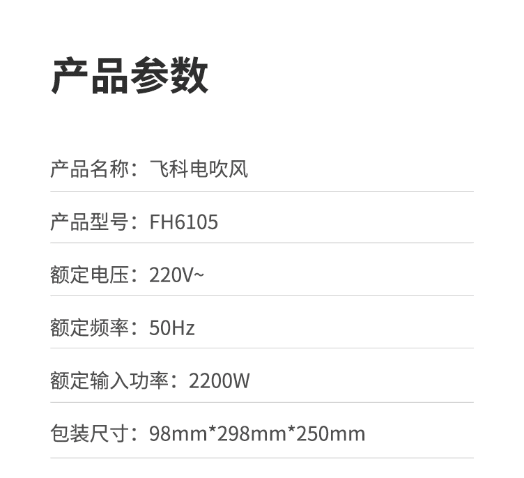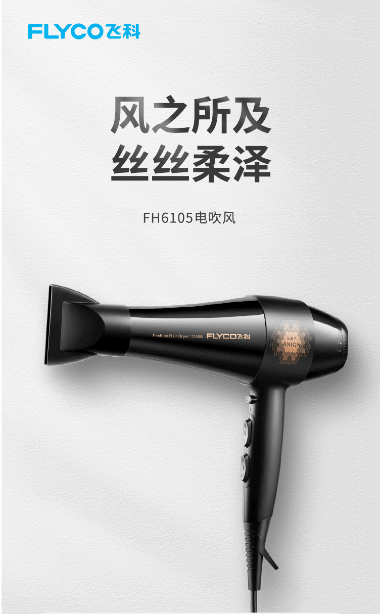 商品名称:飞科(FLYCO)电吹风机FH6105大功率吹风筒负离子 2200W