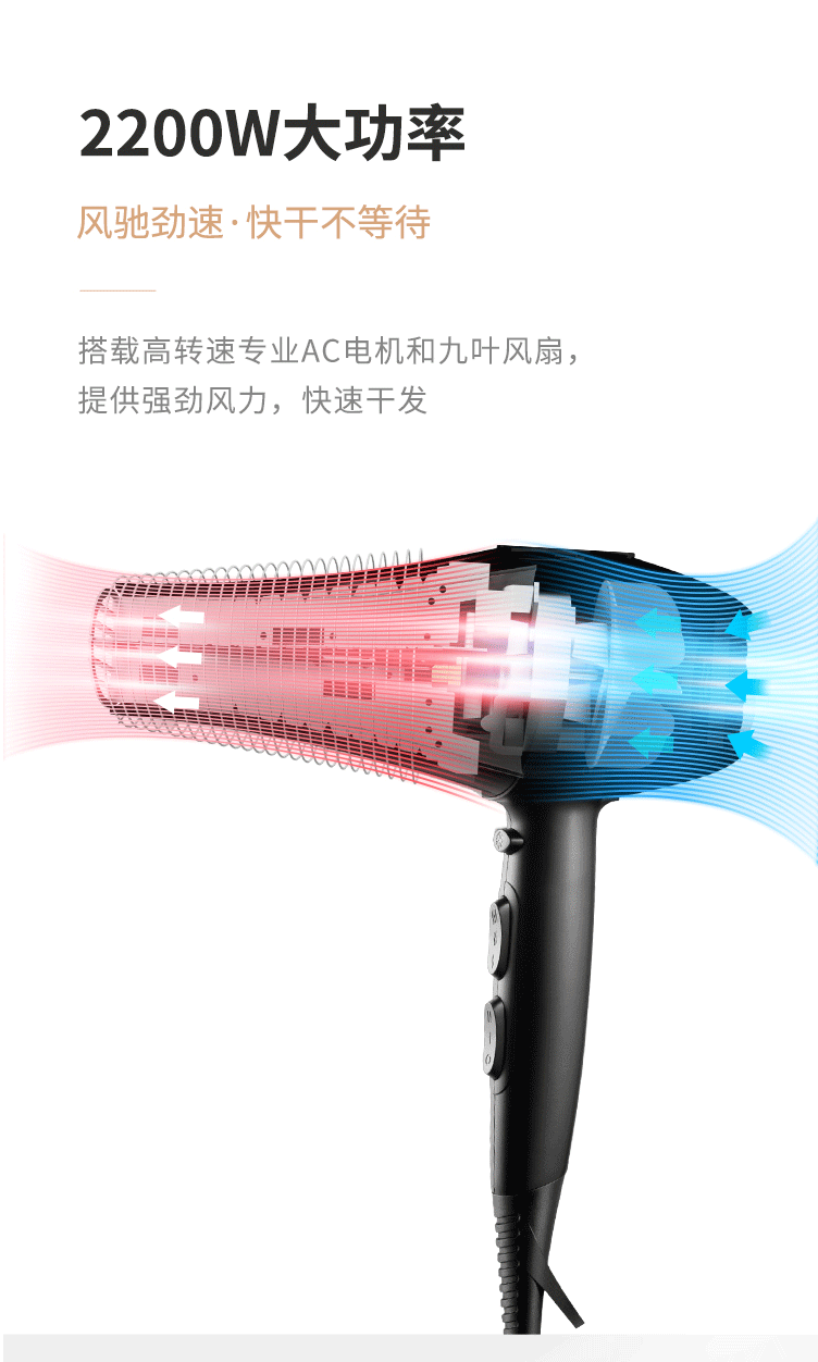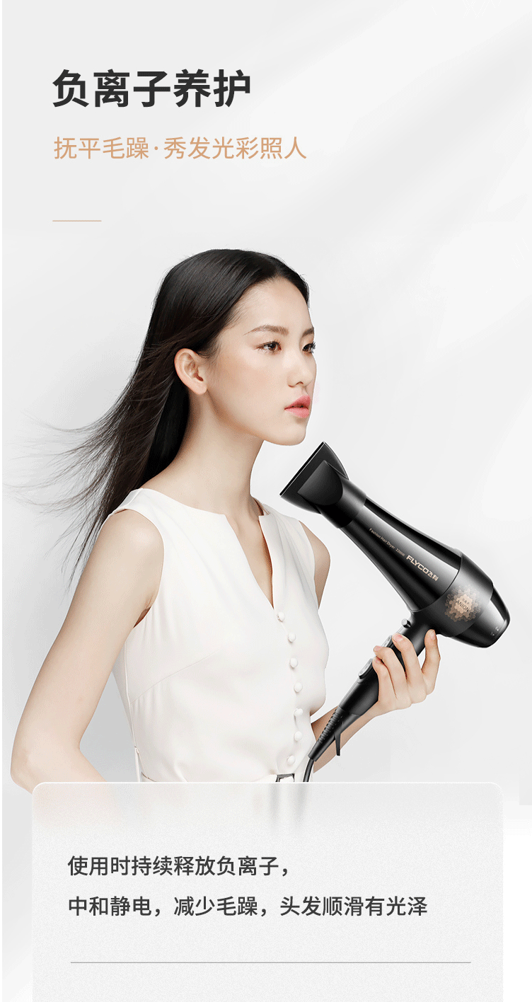 飞科(FLYCO)电吹风机FH6105大功率吹风筒负离子 2200W