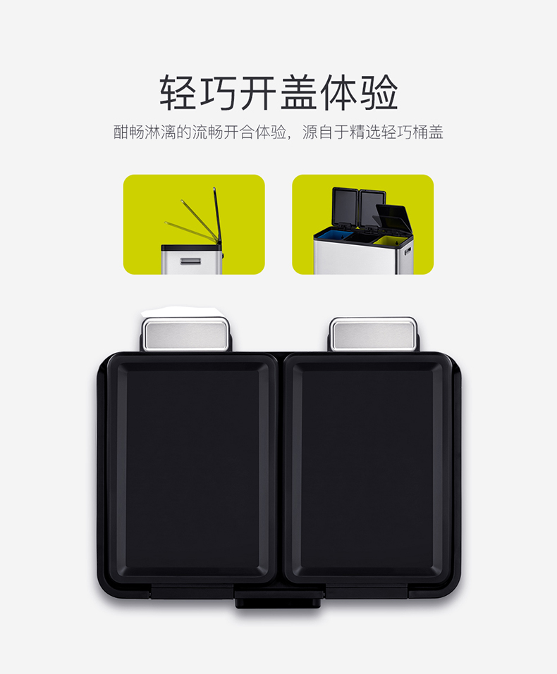 EKO分类垃圾桶 干湿分离大号不锈钢独立脚踏式带盖桶 EK8229MT-15L+15L