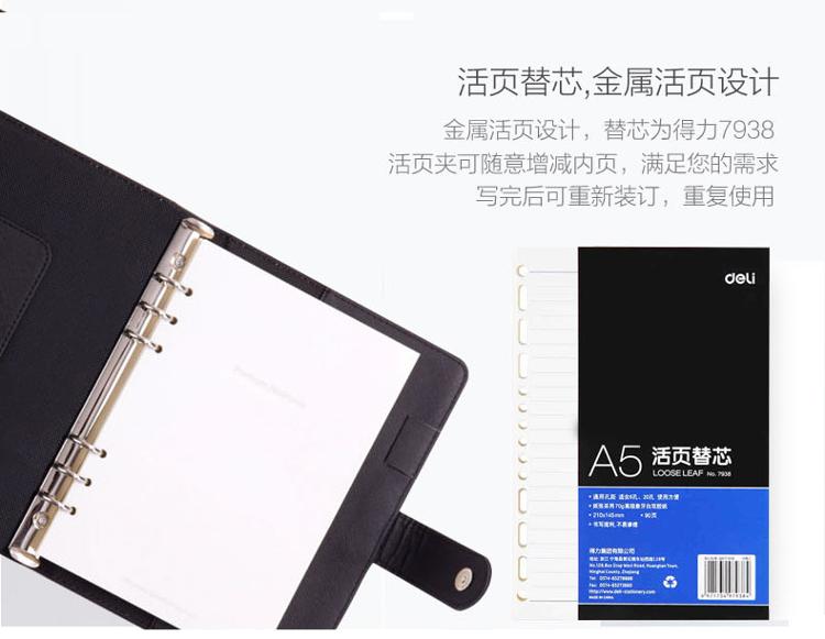 商品名称:得力(deli)25K100张商务活页笔记本子 A5工作记事本皮面本 黑色3151