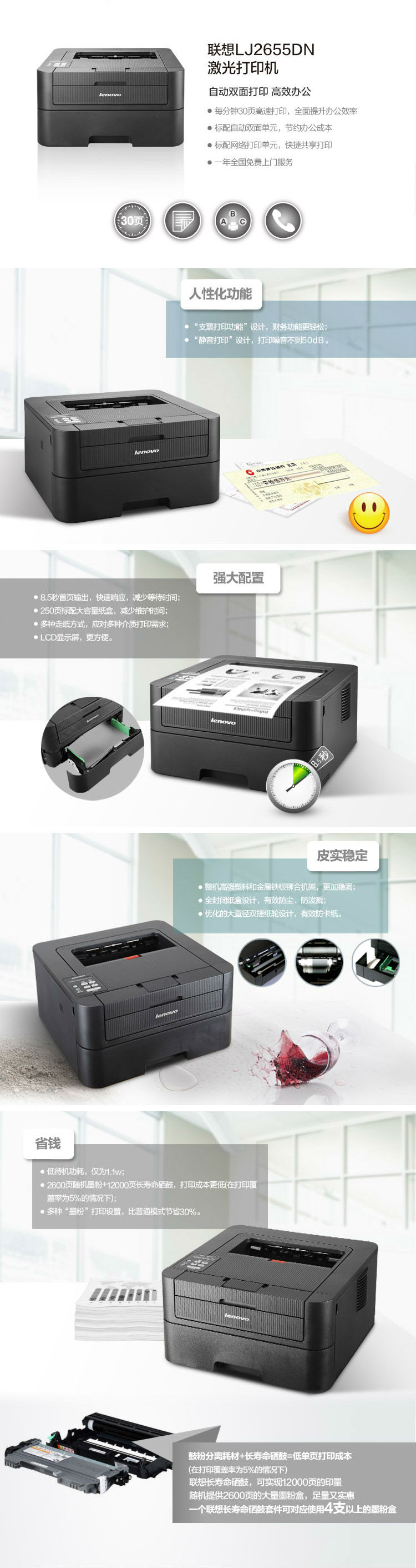 商品名称:联想(Lenovo)LJ2655DN 黑白激光打印机 有线网络自动双面打印