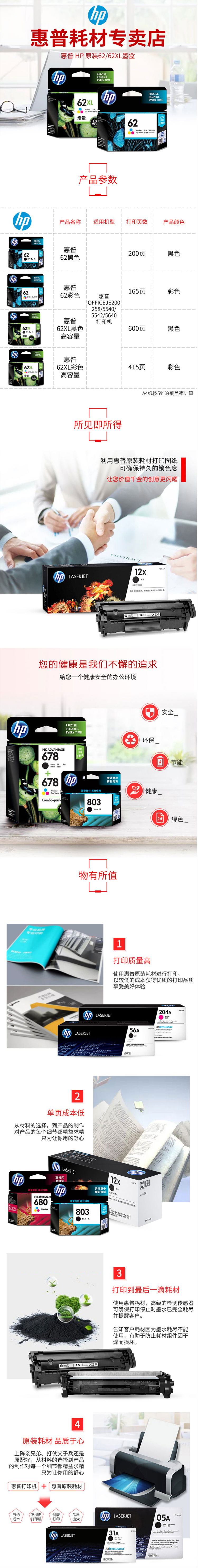 惠普(HP)C2P07AA(62XL)高容量原装彩色墨盒 (适用于:HP OfficeJet 200 移动打印机)