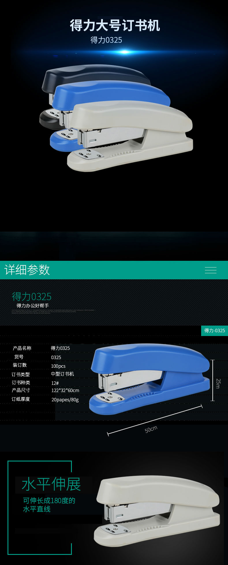 商品名称:得力0325订书机 12#订书器 白色