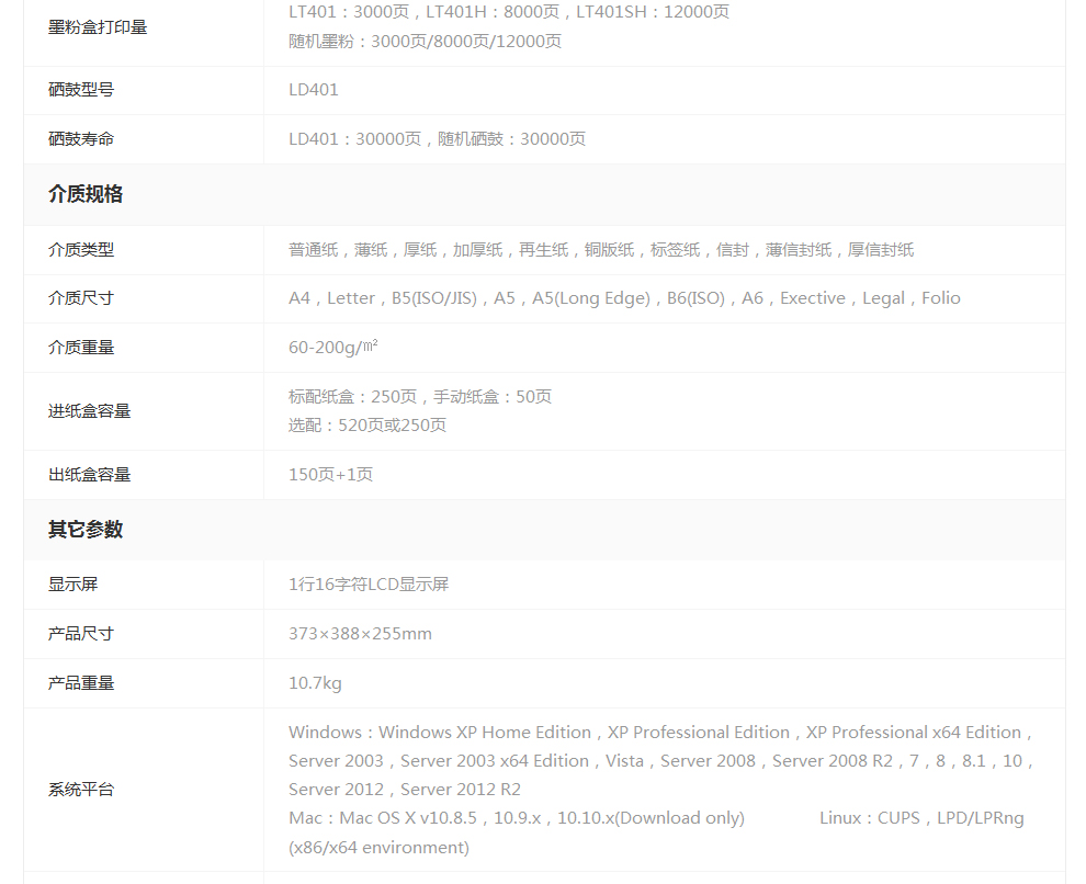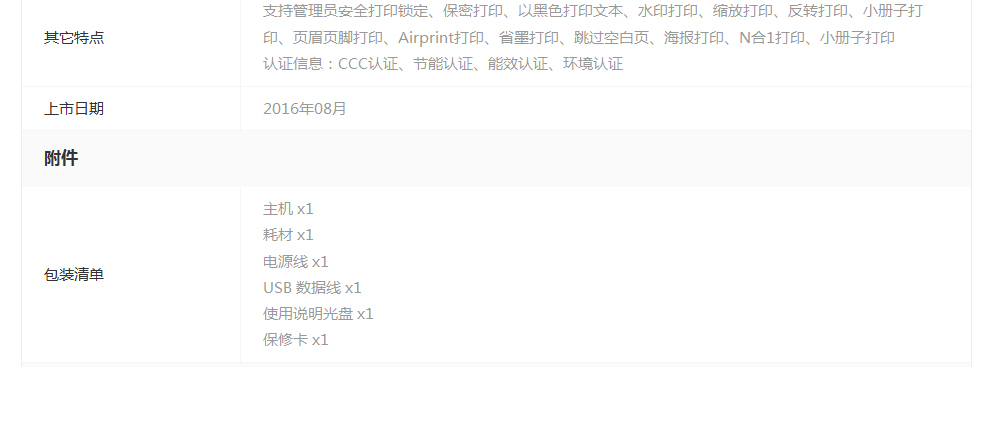 类型:黑白激光打印机