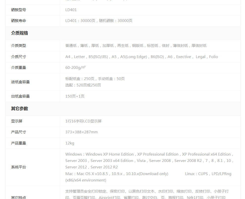 类型:黑白激光打印机
