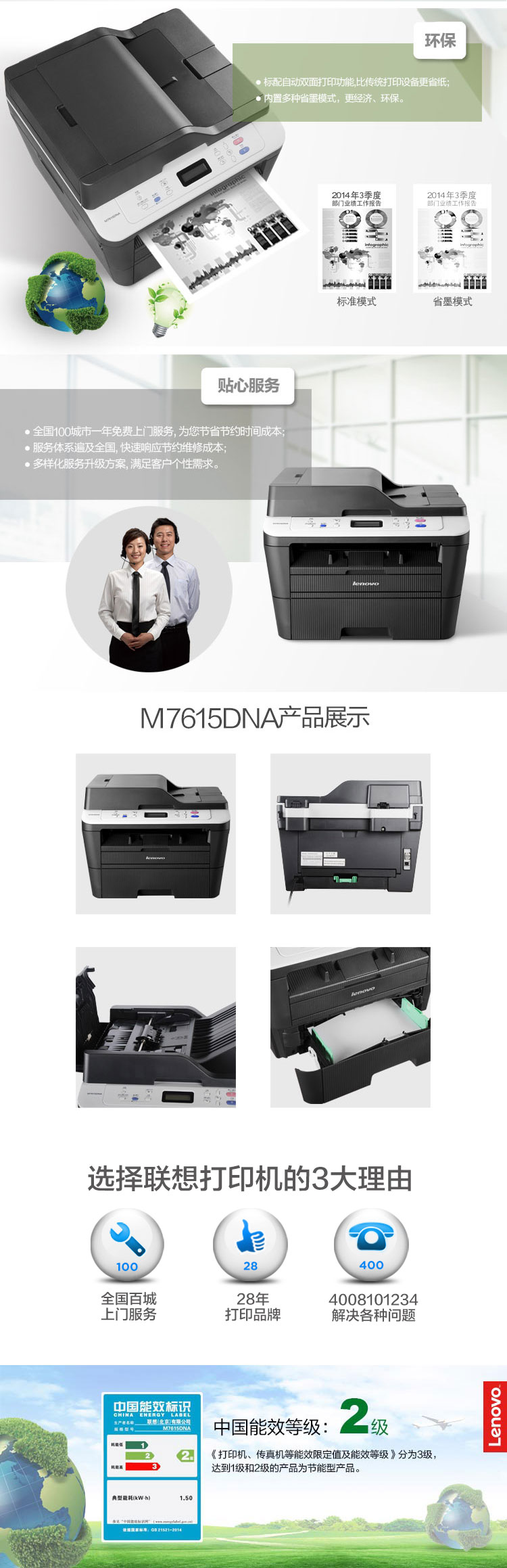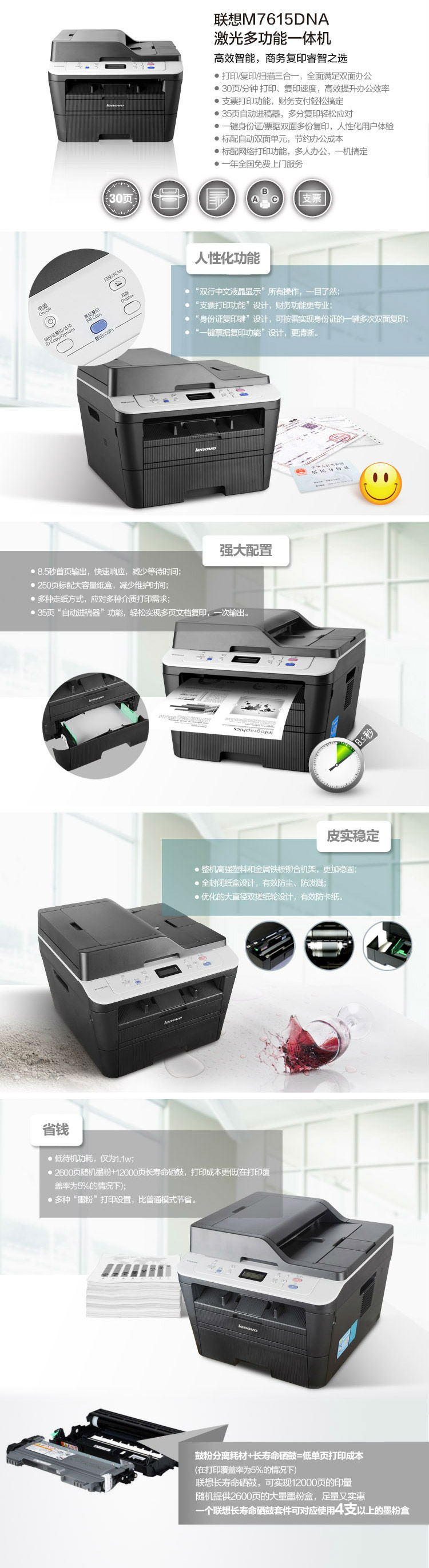 商品名称:联想(Lenovo)M7615DNA 黑白激光多功能一体机 商用办公有线网络双面打印